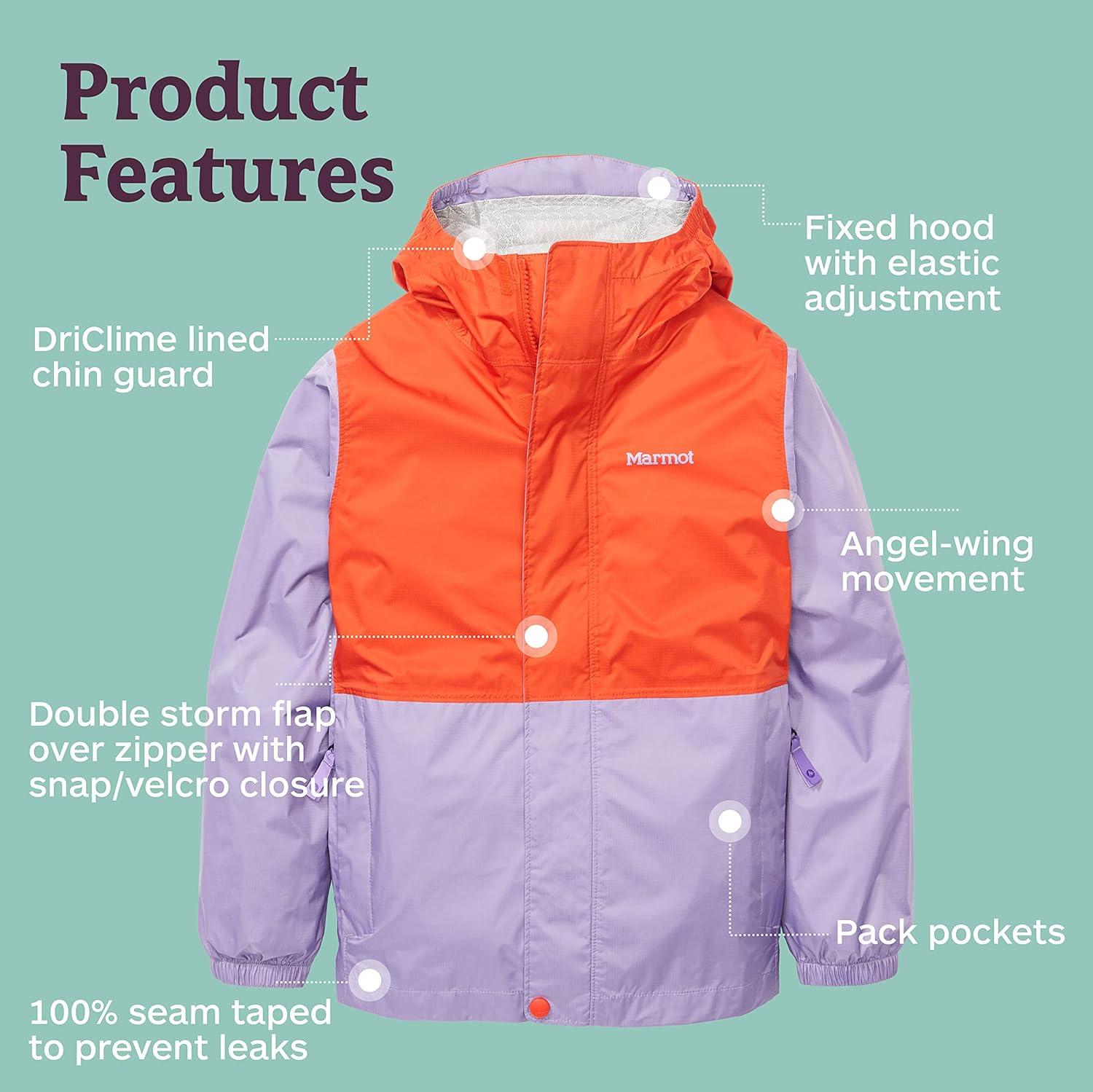 MARMOT boys Kid’s Precip Eco Jacket(Red Sun/Paisley Purple)