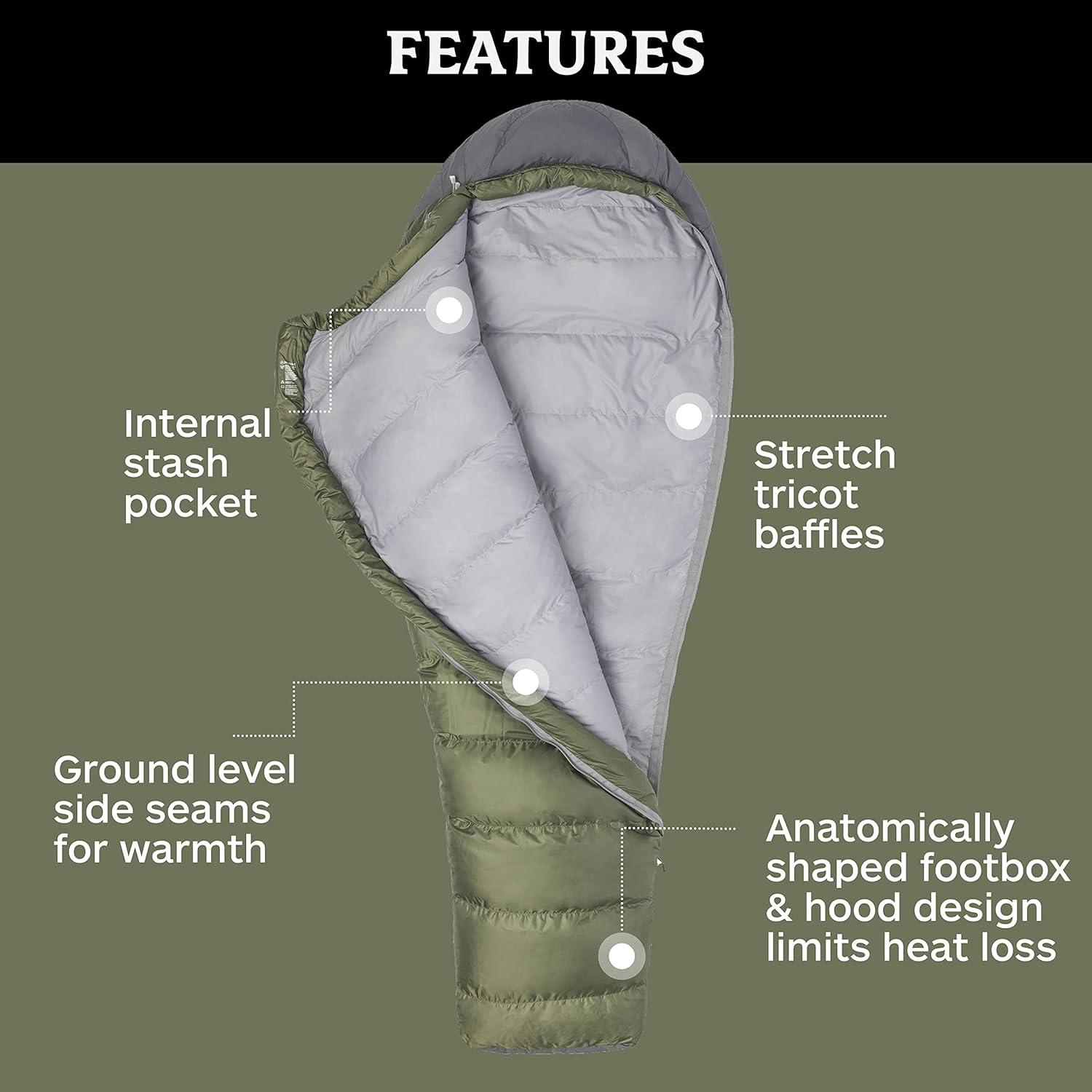 MARMOT Ironwood Mummy Sleeping Bag – 650 Fill Down, Lightweight, 30-Degree Rating, Bomber Green/Steel Onyx, Regular