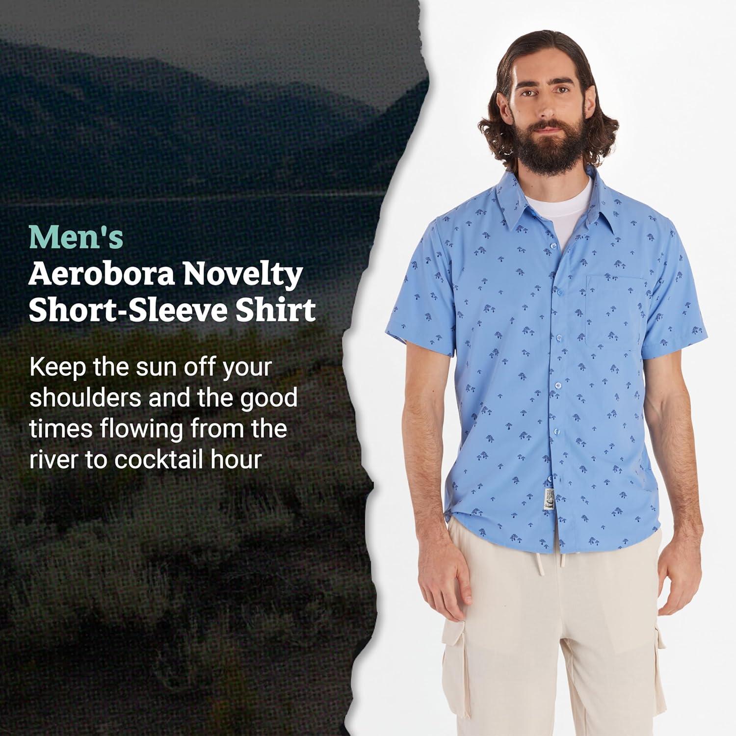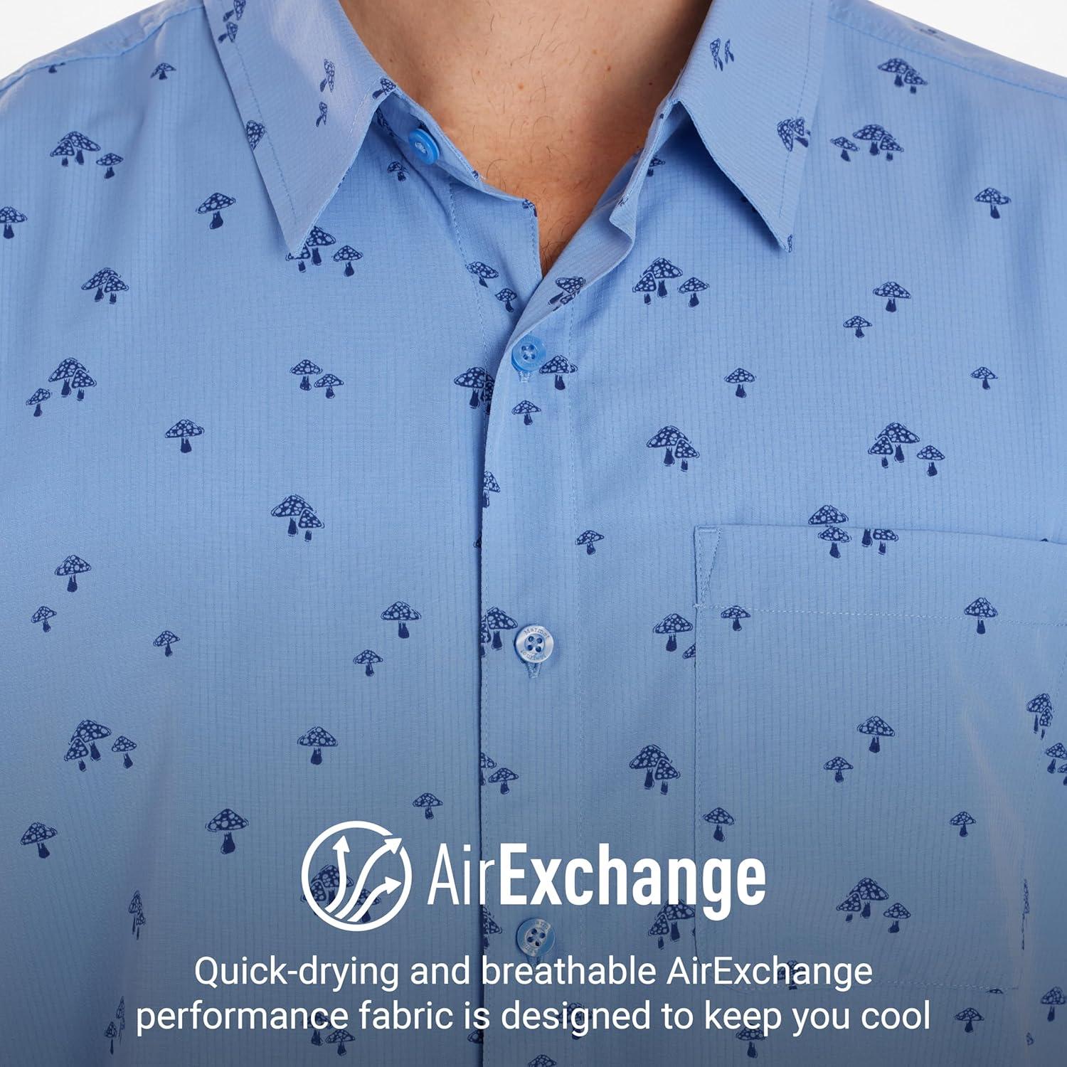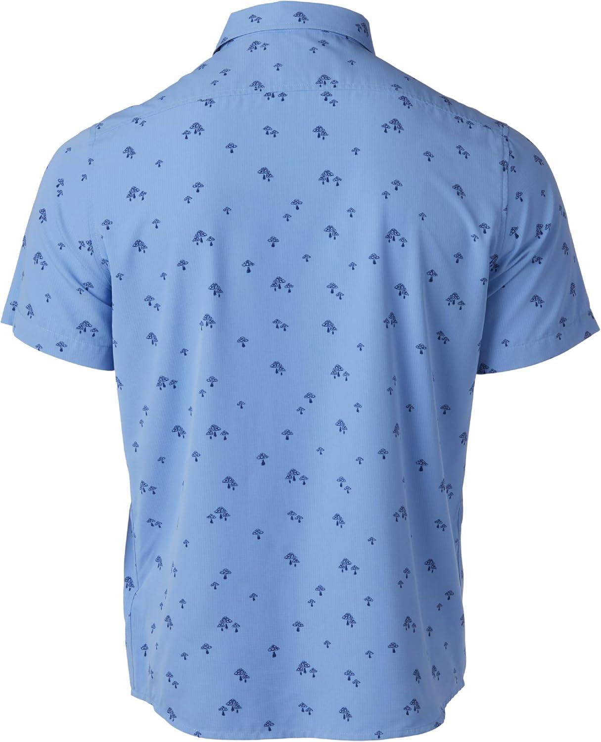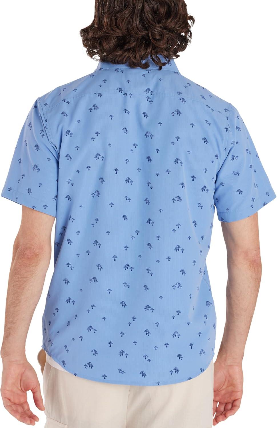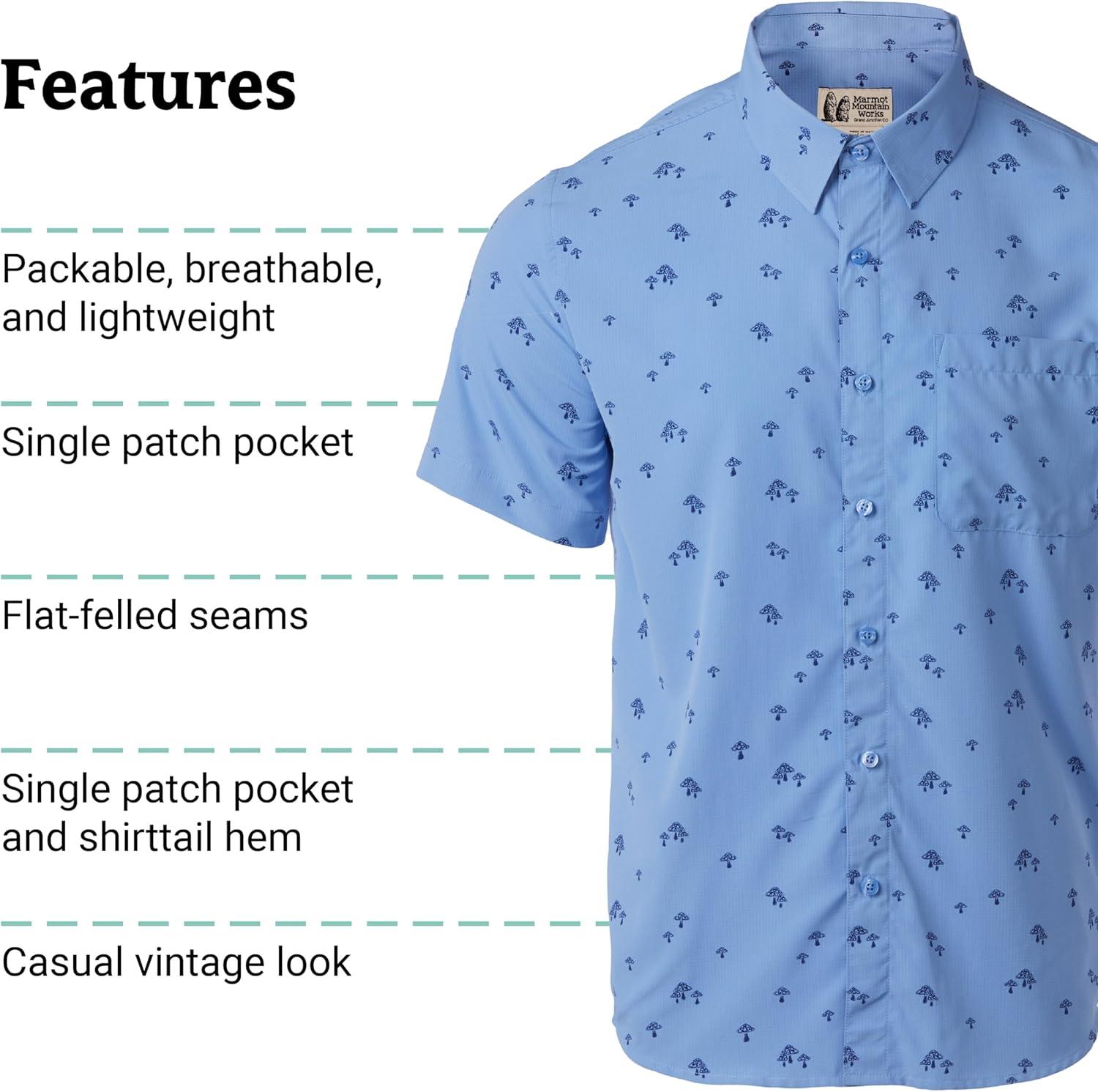 MARMOT Men’s Aerobora Short Sleeve Button-Down Shirt – Lightweight, Packable, Quick-Drying UPF Protection(Blue Bonnet Mushroom)