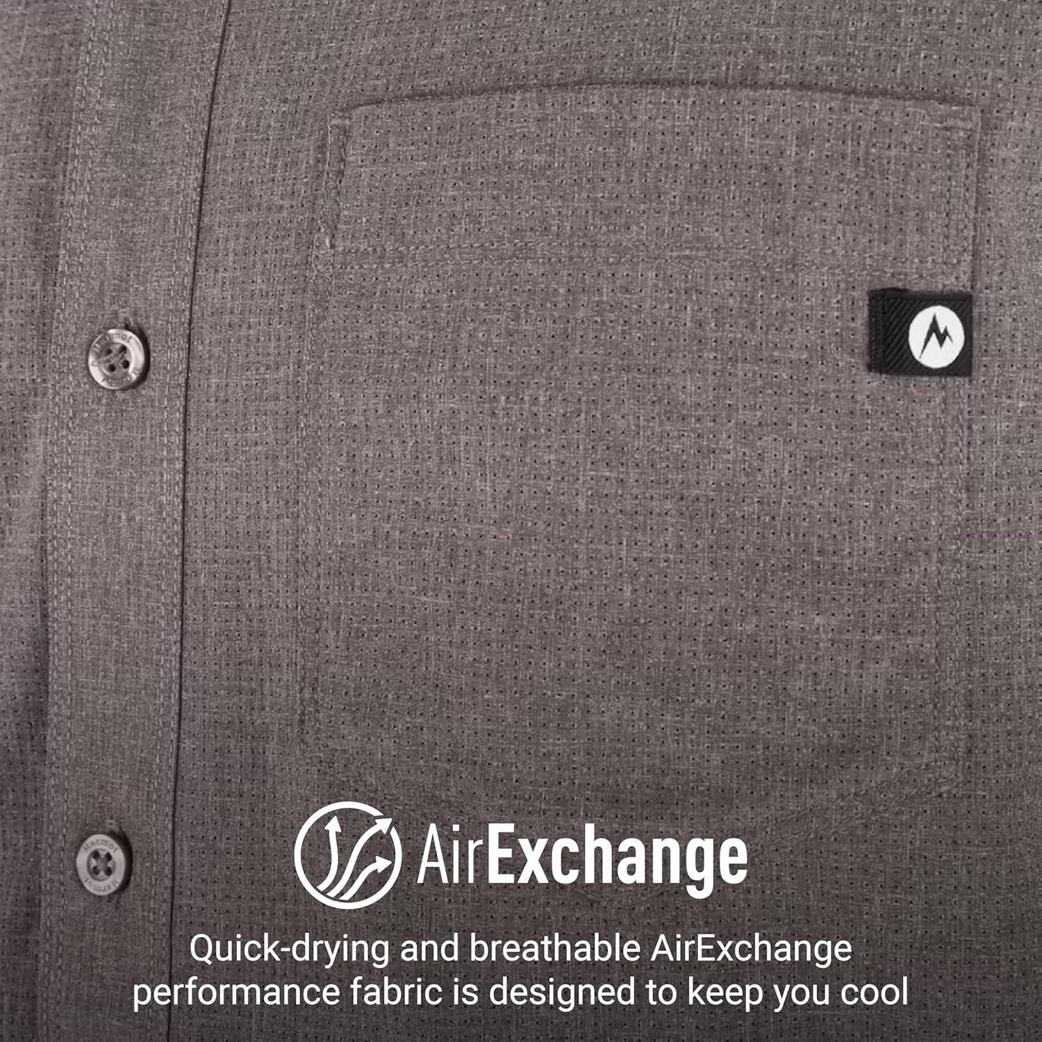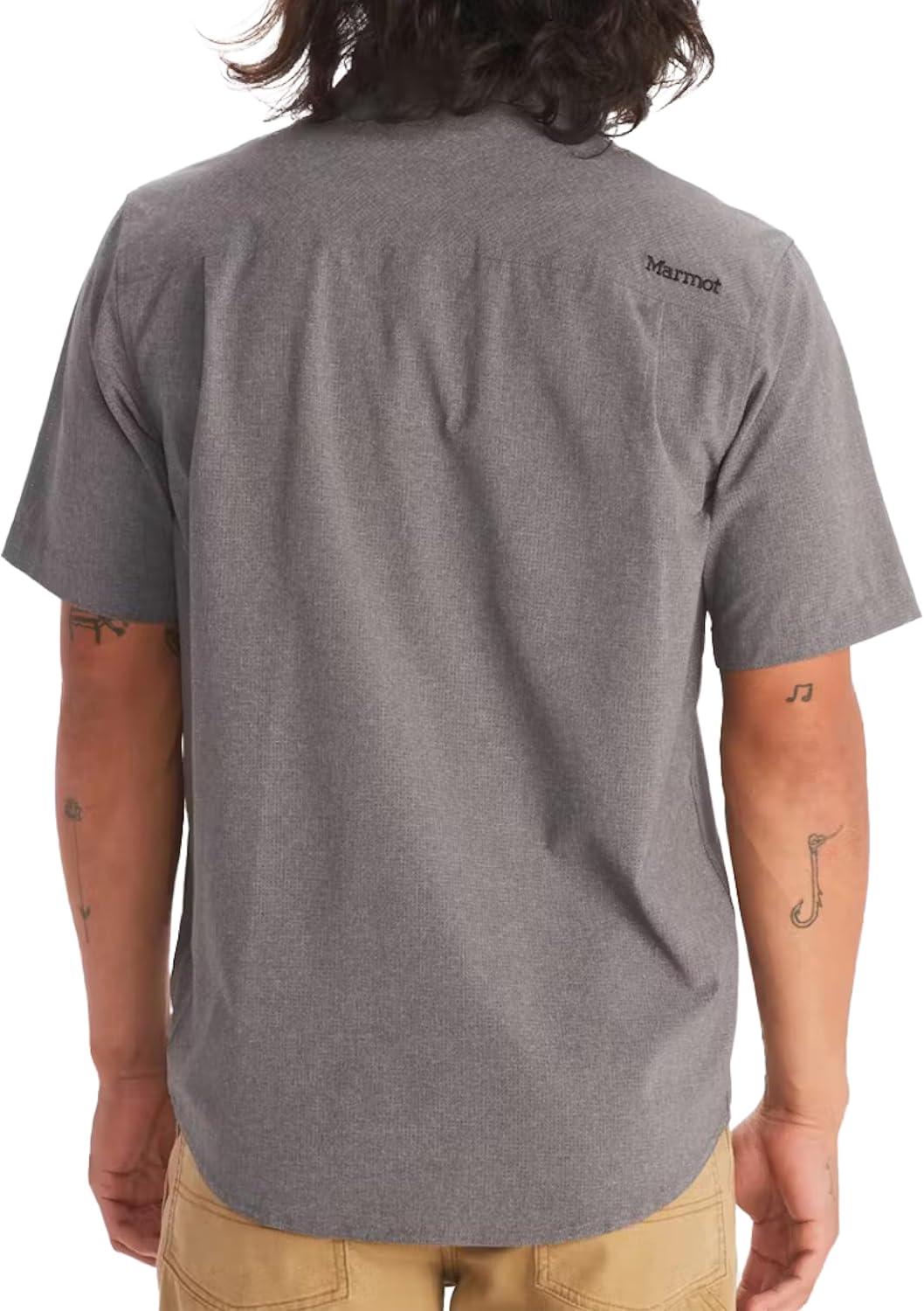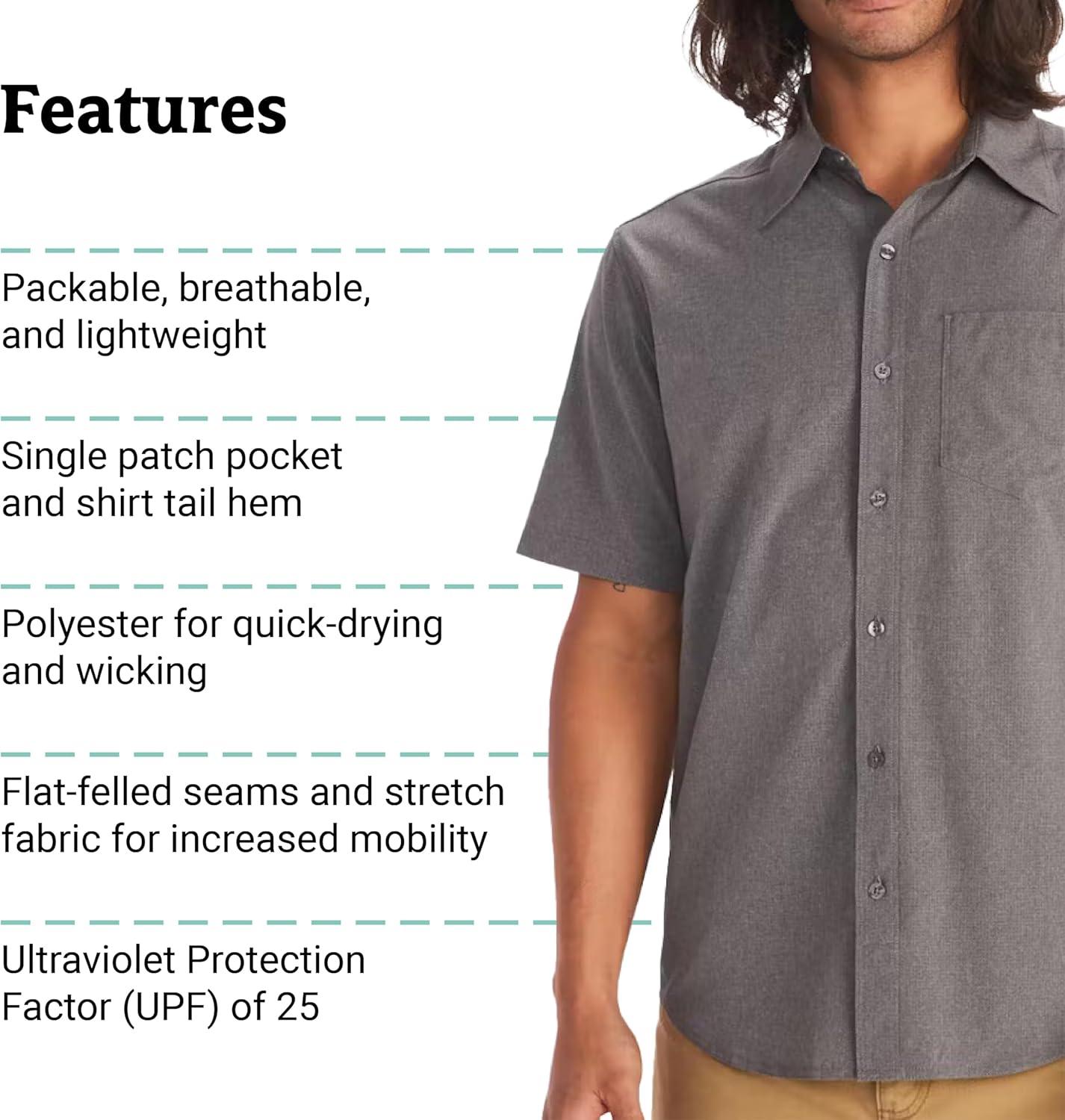 MARMOT Men’s Aerobora Short Sleeve Button-Down Shirt – Lightweight, Packable, Quick-Drying UPF Protection(Cinder)