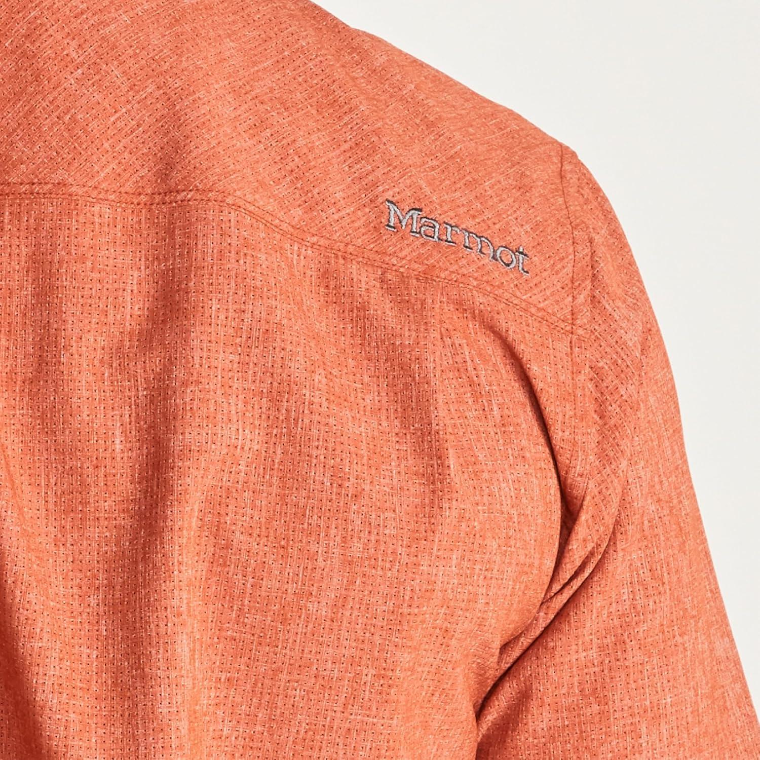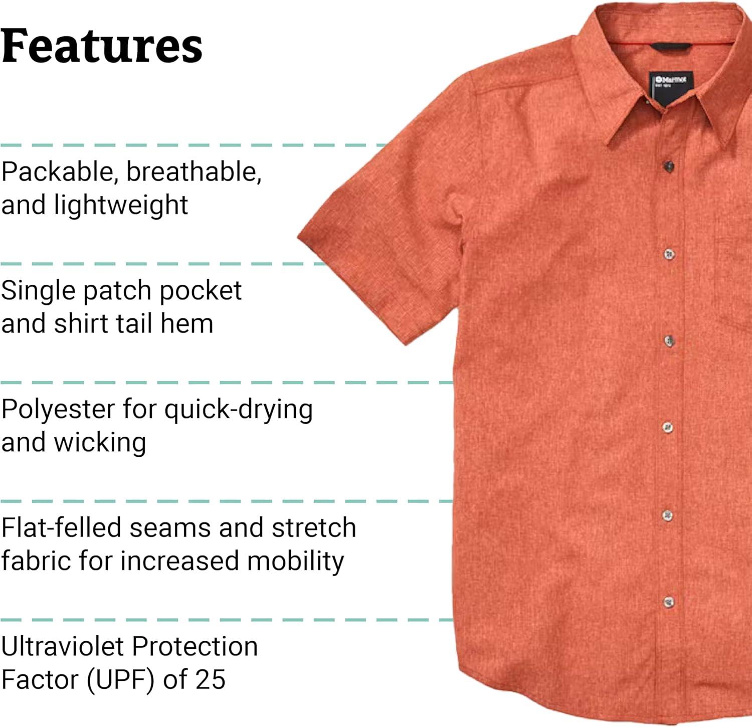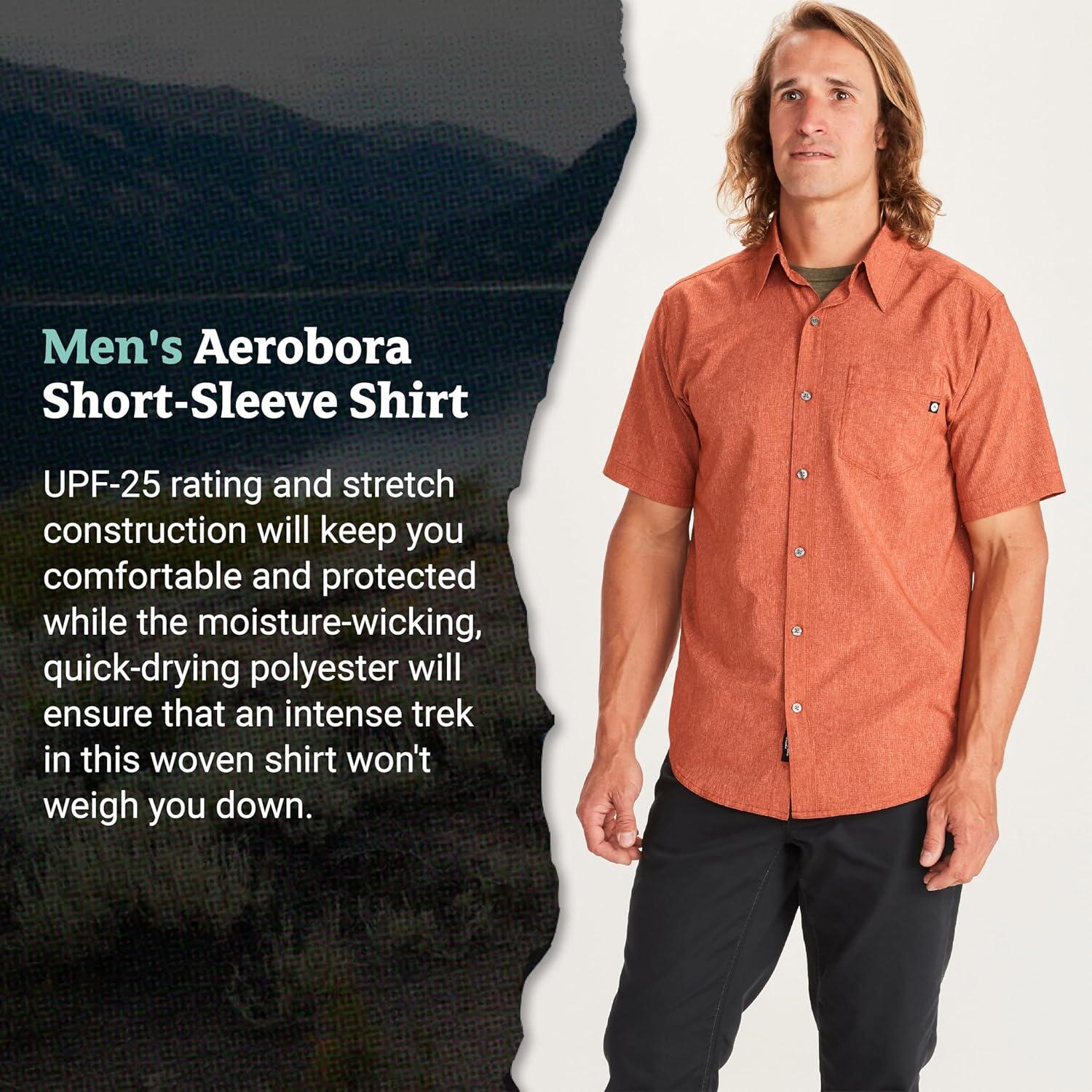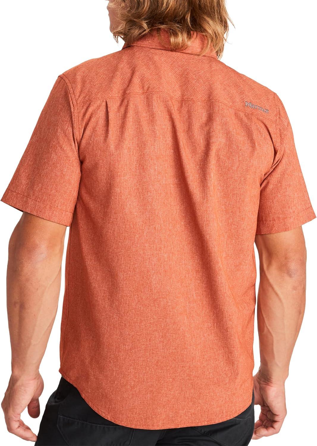 MARMOT Men’s Aerobora Short Sleeve Button-Down Shirt – Lightweight, Packable, Quick-Drying UPF Protection(Picante)