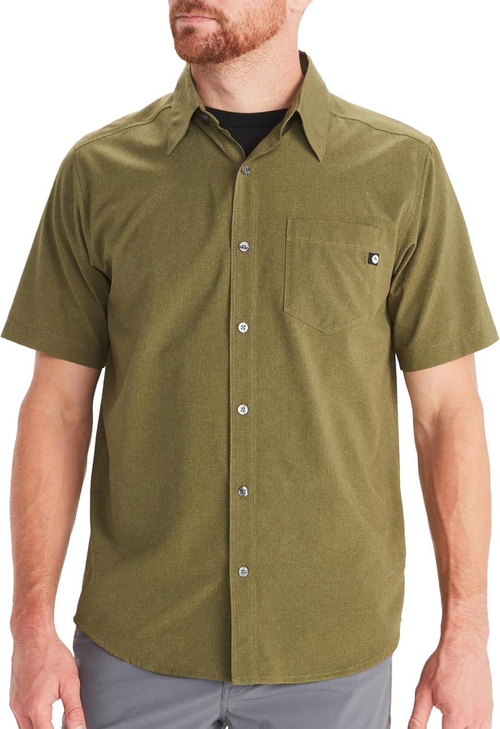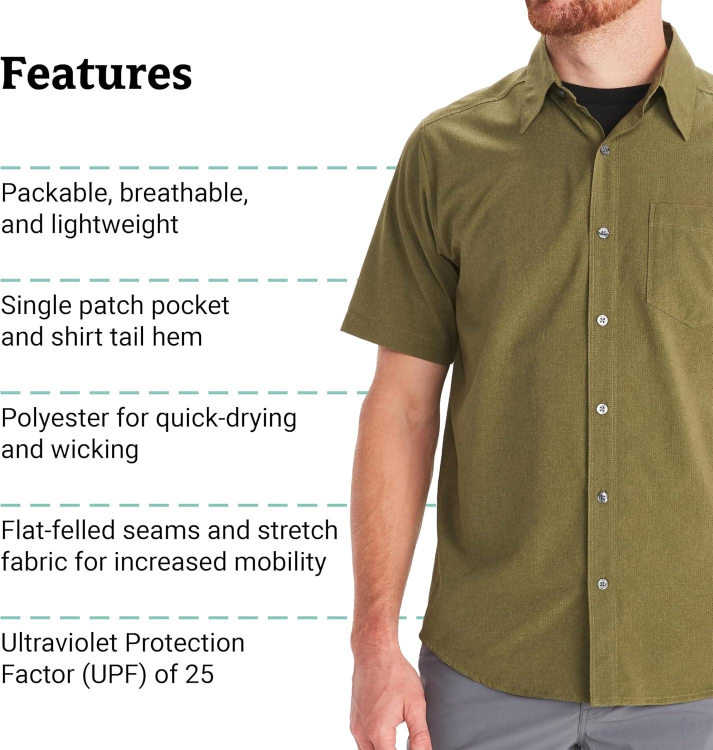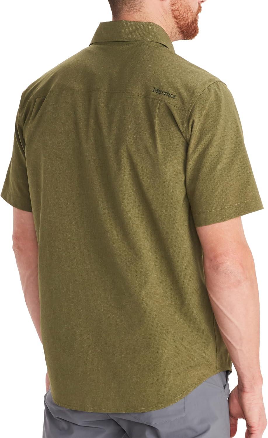 MARMOT Men’s Aerobora Short Sleeve Button-Down Shirt – Lightweight, Packable, Quick-Drying UPF Protection(Winter Moss)