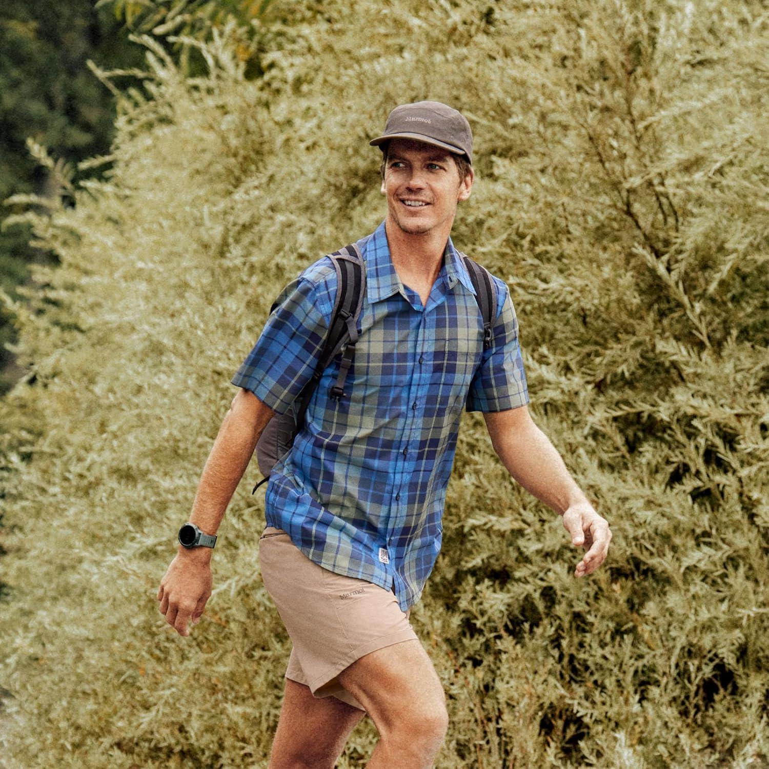 Marmot Mens Airexchange UPF 40 Short Sleeve Shirt(Arctic Navy Wayland Plaid)