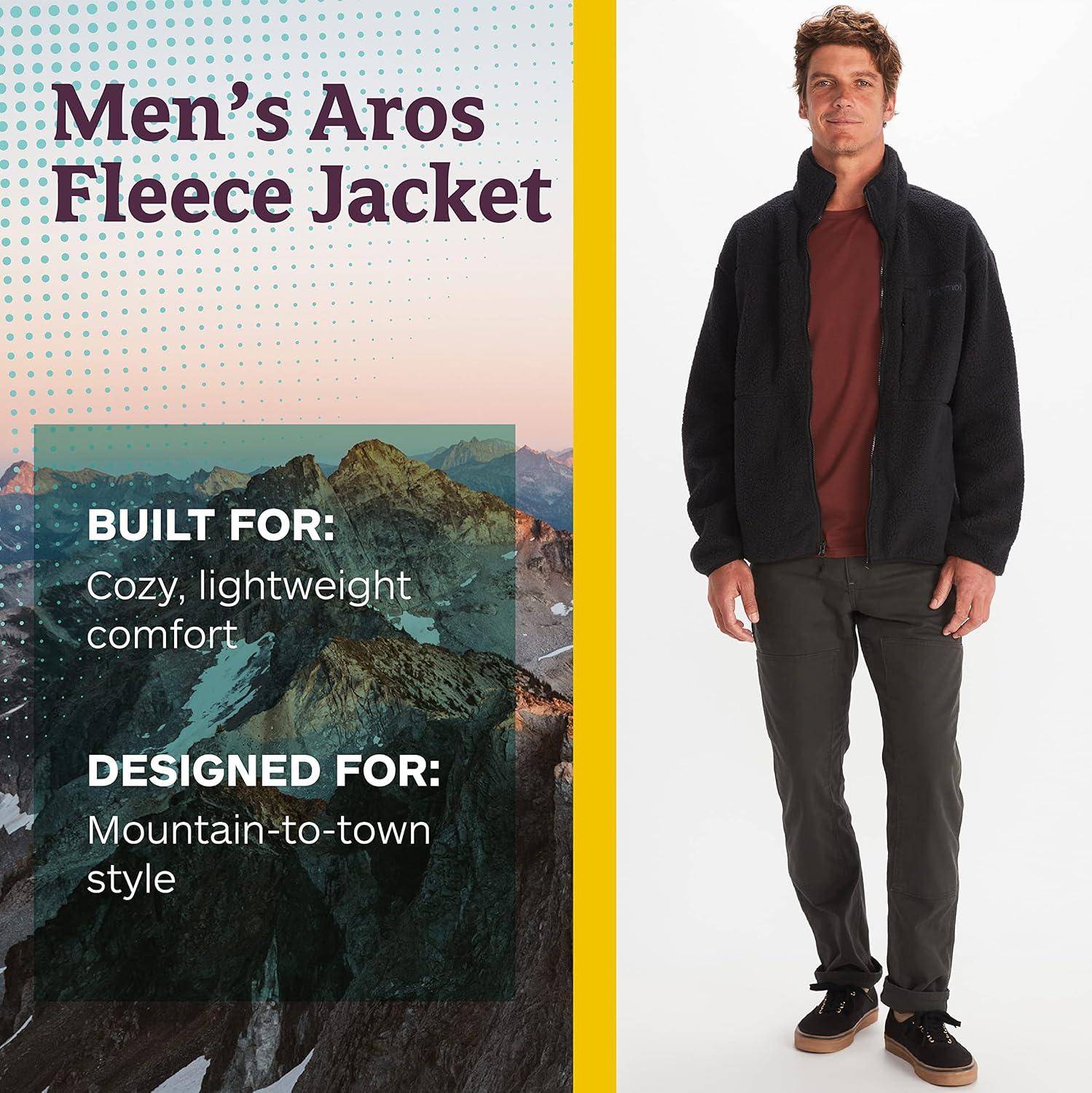Made with plush polyester sherpa, the Men's Aros Fleece provides delightfully soft warmth for those chilly fall hikes or nights around the campfire. The high-pile polyester sherpa provides a moisture-wicking and lightweight fit for comfort on active and laid-back days alike. As a plus, Marmot made this jacket with 100% recycled materials for an eco-friendly fit in a retro fleece style.