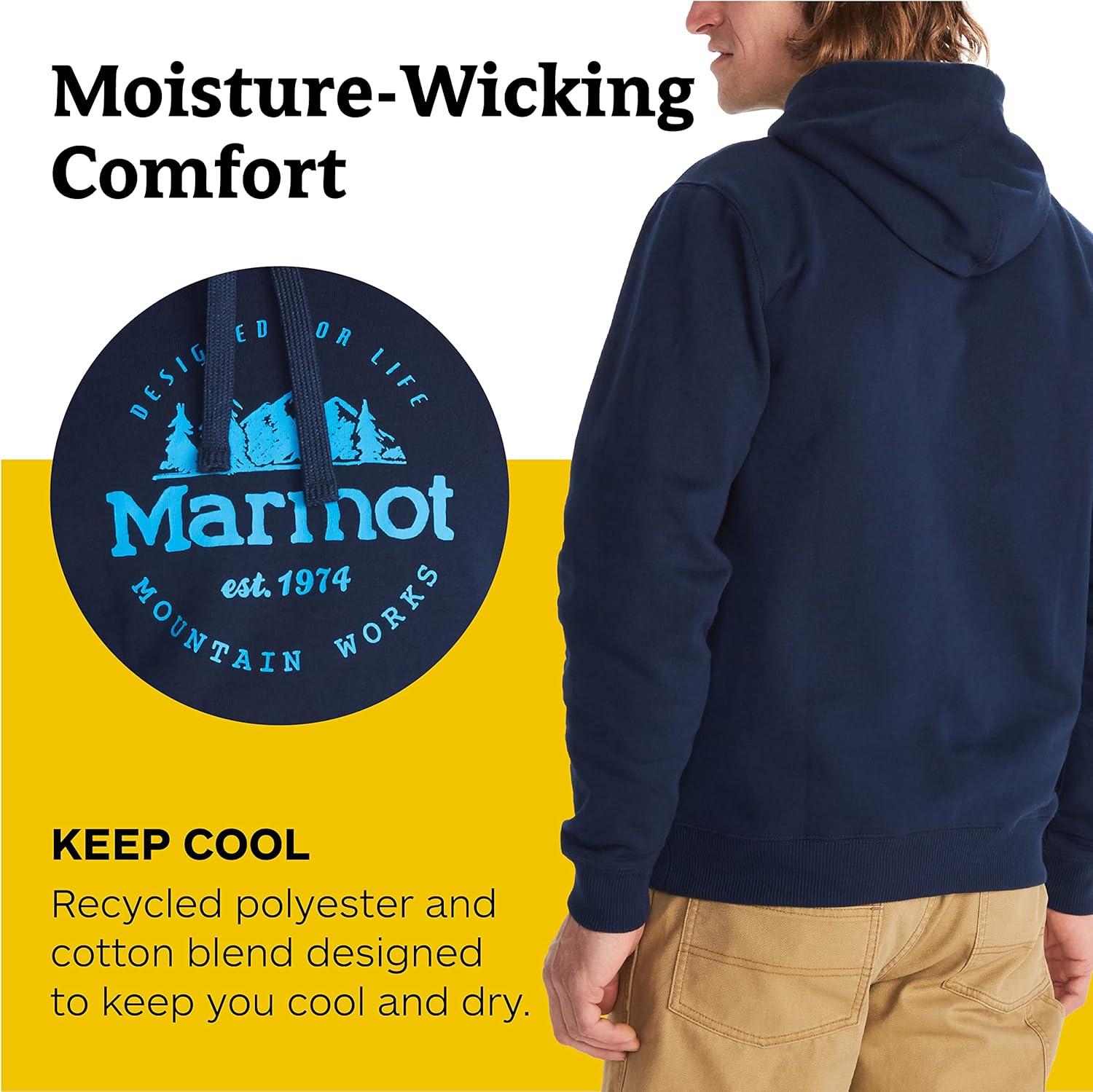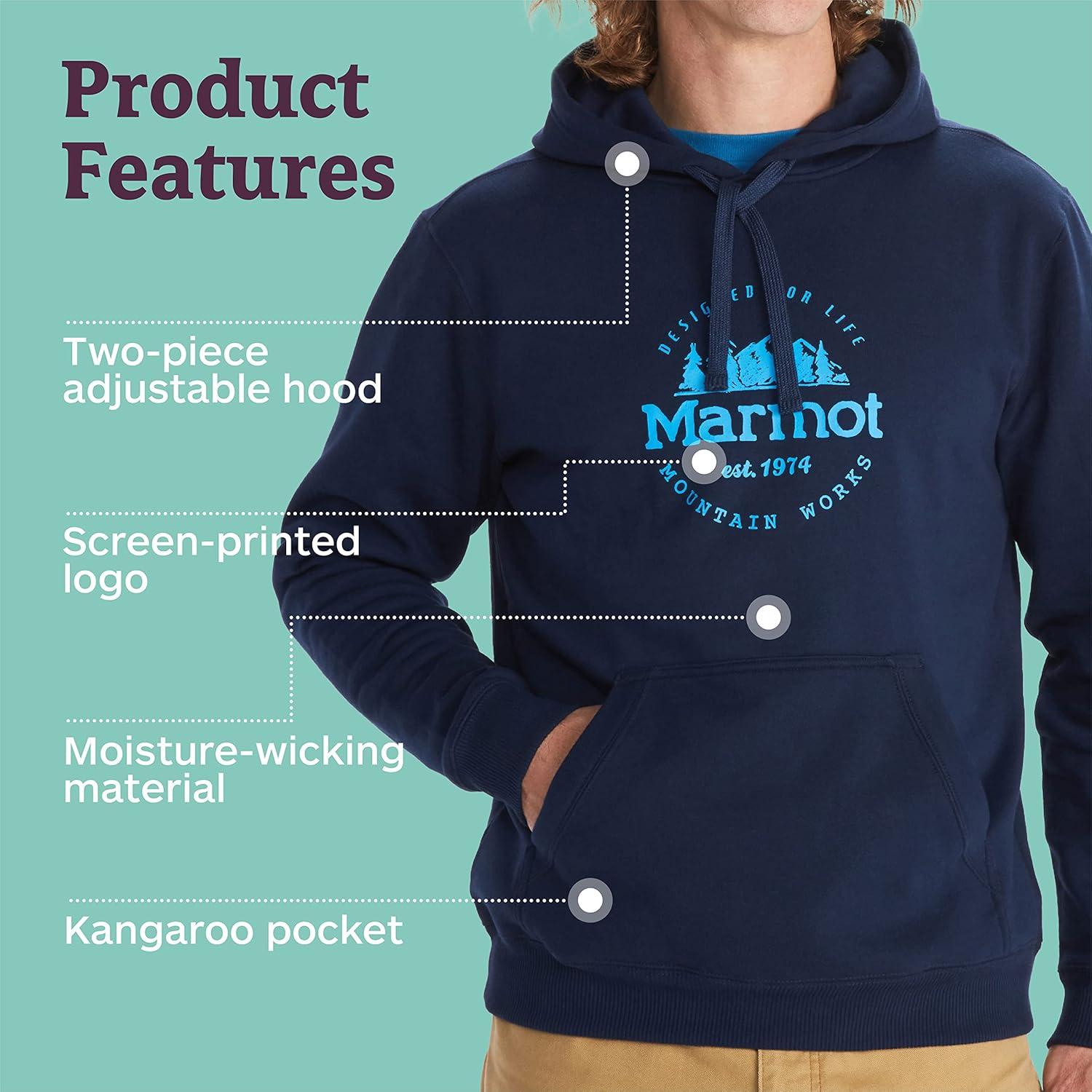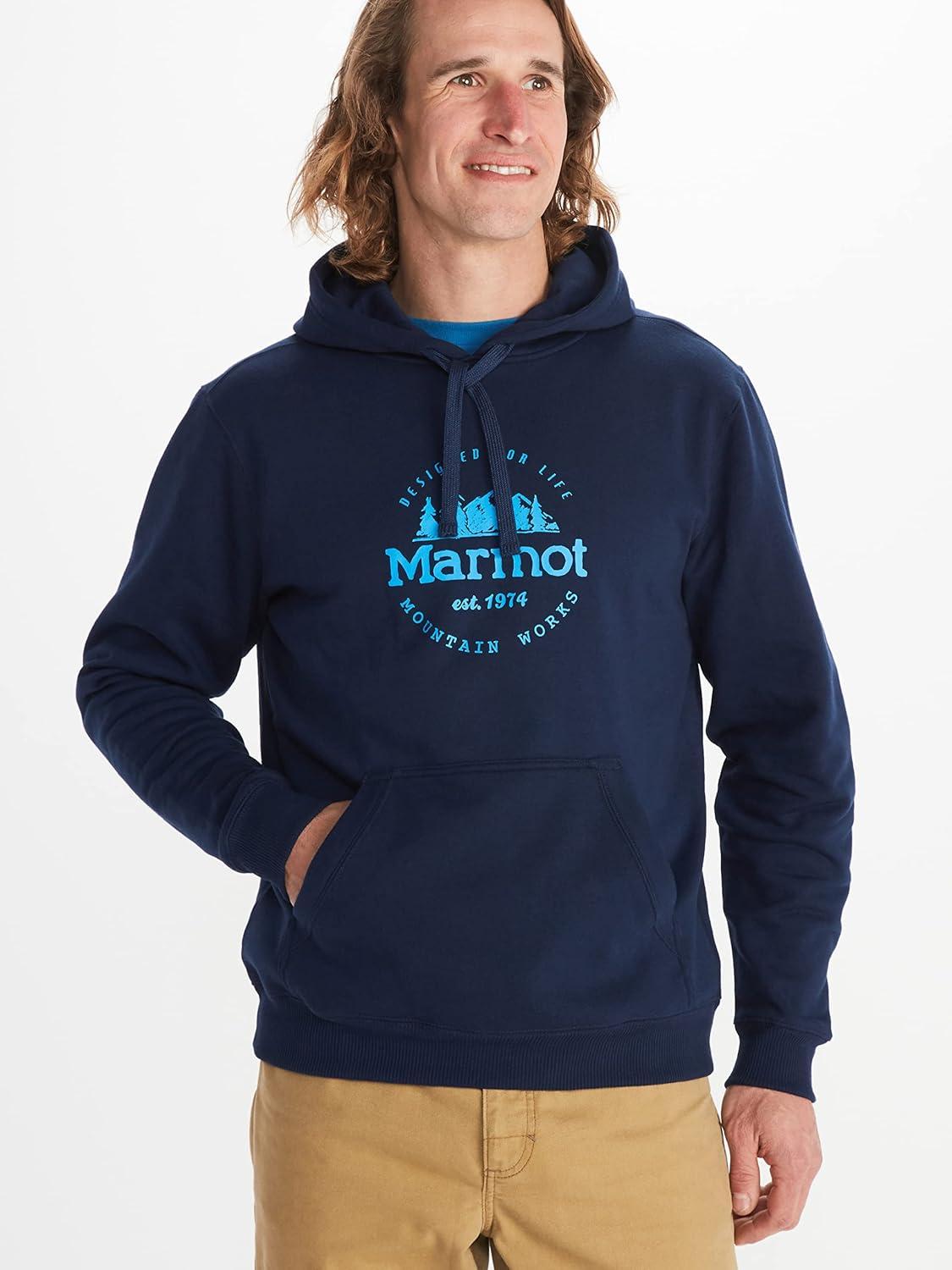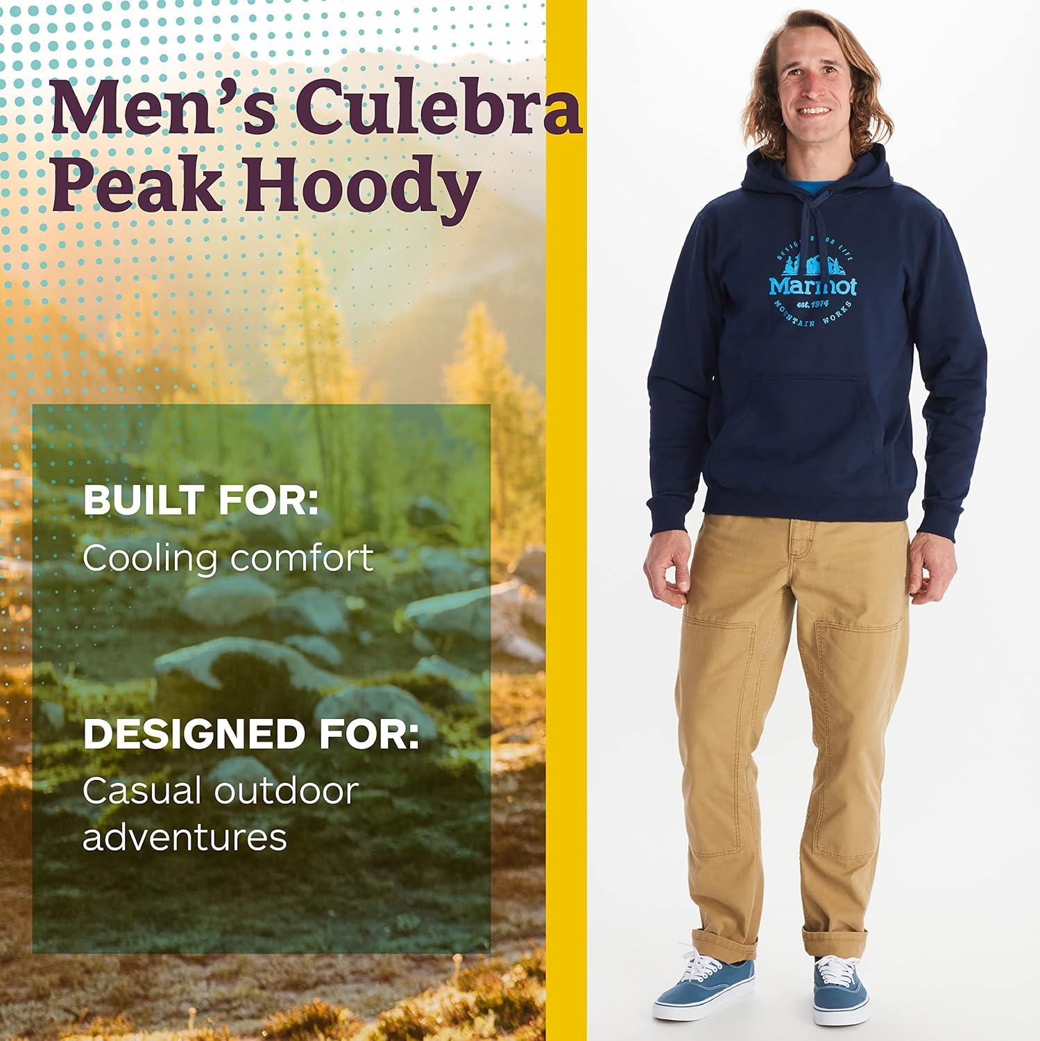 MARMOT Men’s Culebra Peak Hoody – Hooded Midweight Pullover Fleece Sweatshirt with Screen Printed Graphic and Kangaroo Pocket(Arctic Navy)