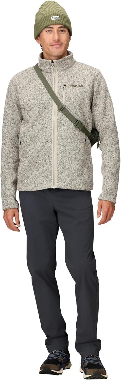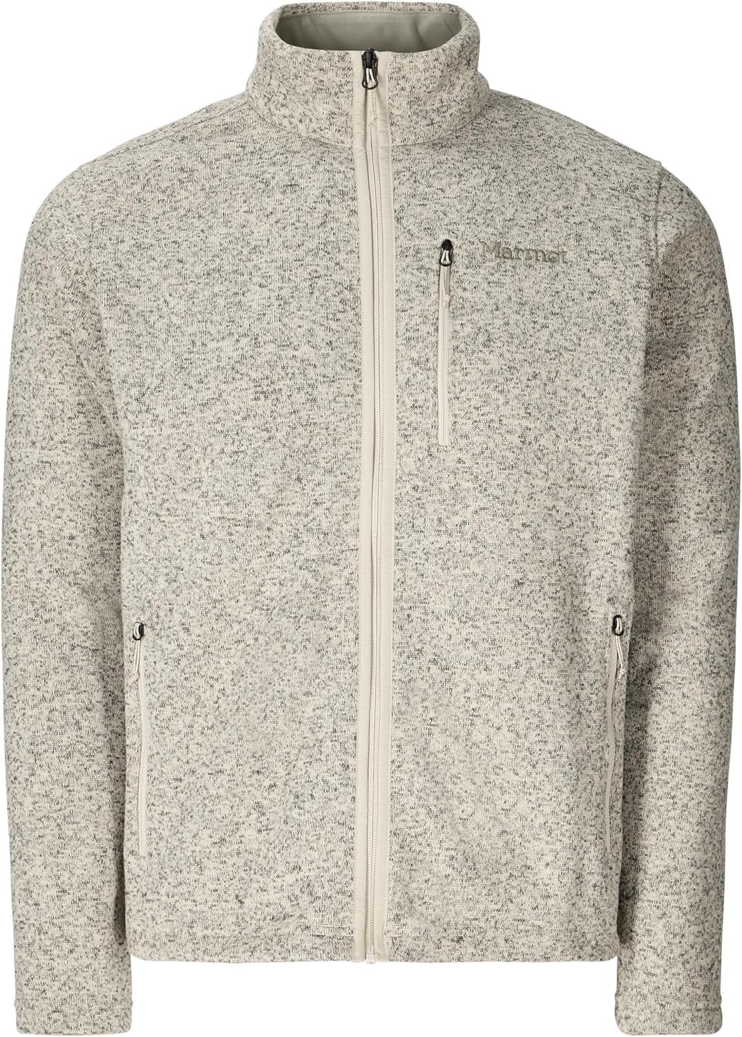 MARMOT Men’s Drop Line Full Zip Sweater Knit Jacket, Birch Bark Heather, Large
