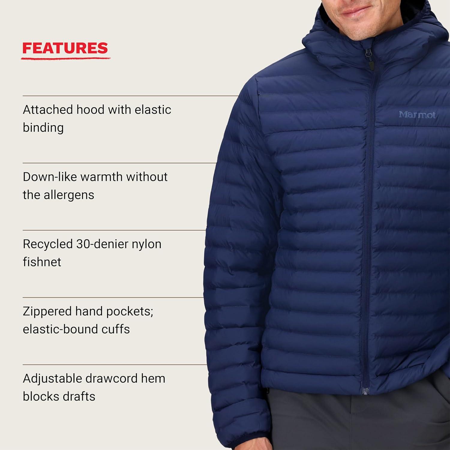 MARMOT Men’s Echo Featherless Hoody – Lightweight Down-Alternative Puffer Jacket with Hood(Arctic Navy)