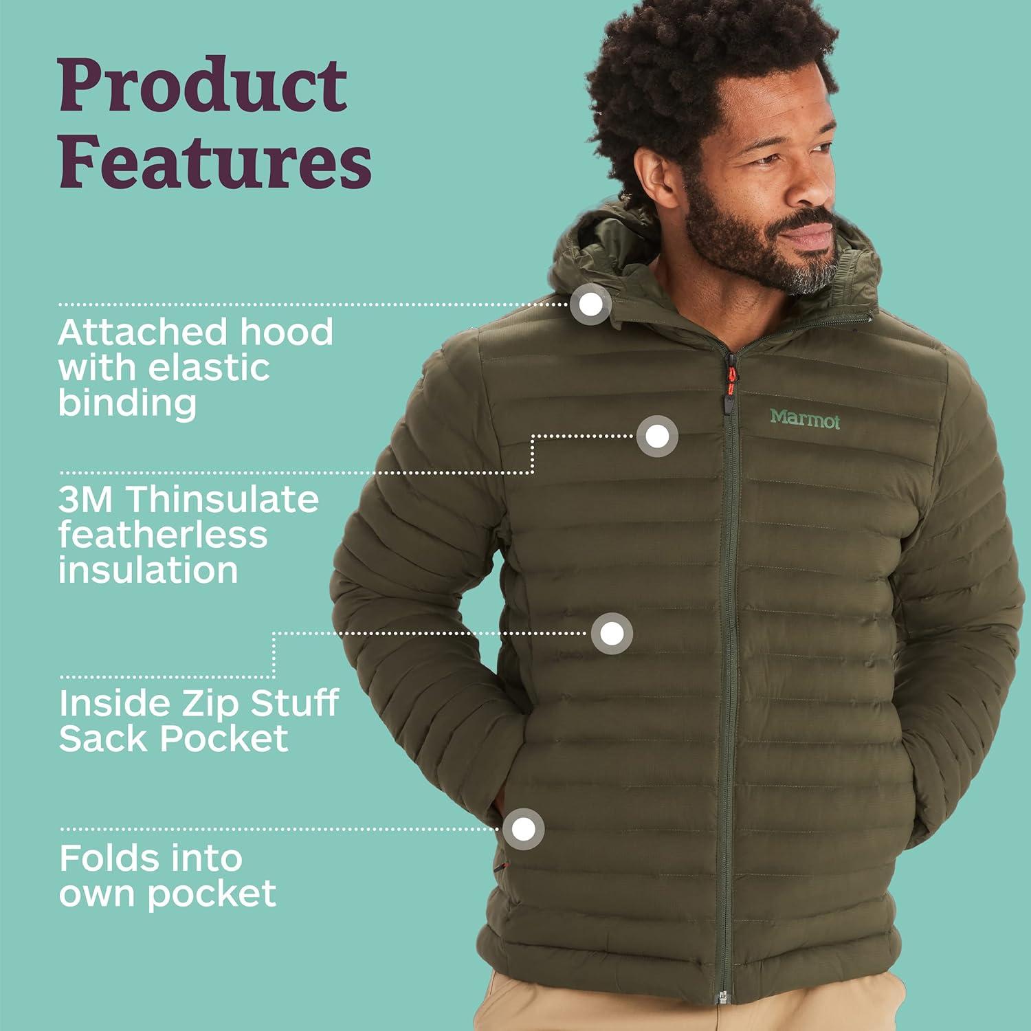 With a sleek design, the Marmot Echo Featherless Hoody for men is able to focus on performance. The raised collar fights off wind whether it is layered under a shell or not, and the 3M Thinsulate insulation traps body heat without weighing you down.