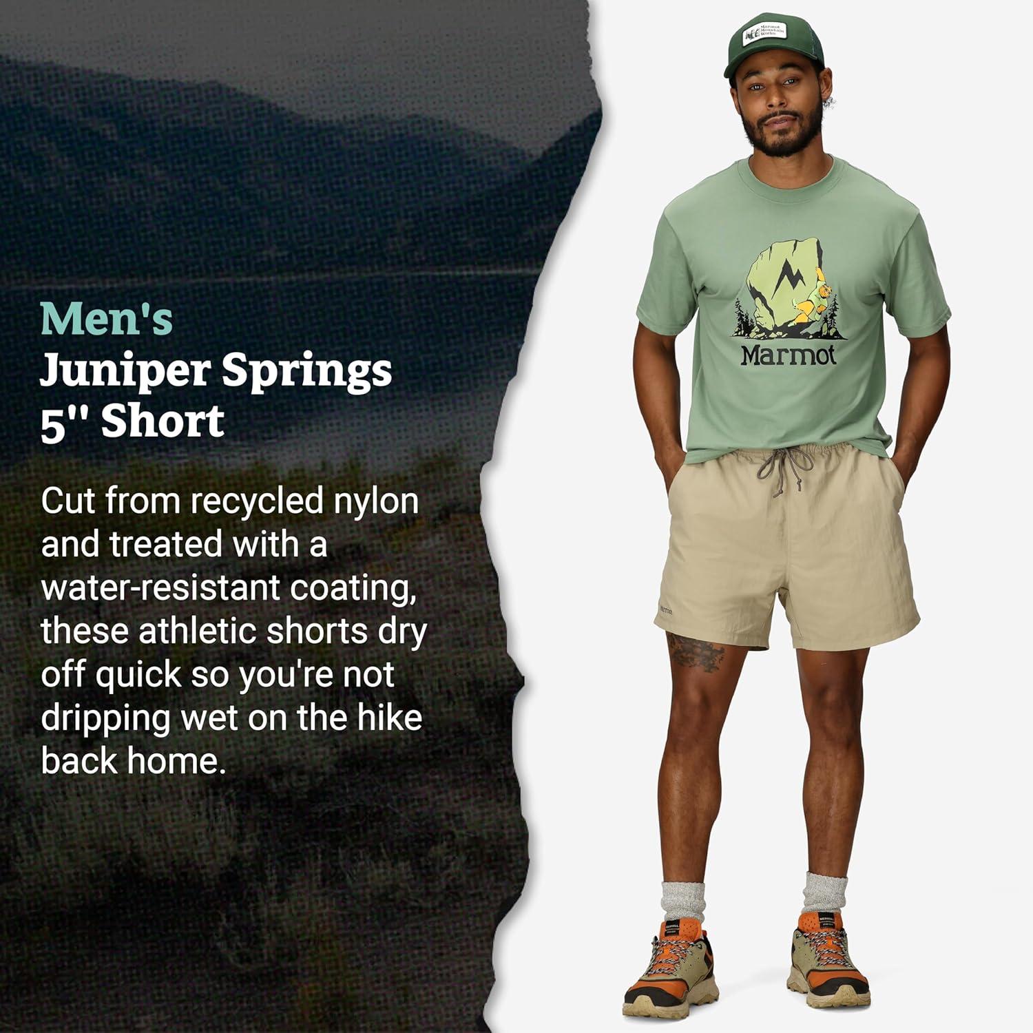 Hike to the lake and take the plunge in the Men's Juniper Springs 5″ Short. Cut from recycled nylon and treated with a water-resistant coating, these athletic shorts dry off quick so you're not dripping wet on the hike back home. A UPF of 50 means you'll stay protected on sunny days in wild places.