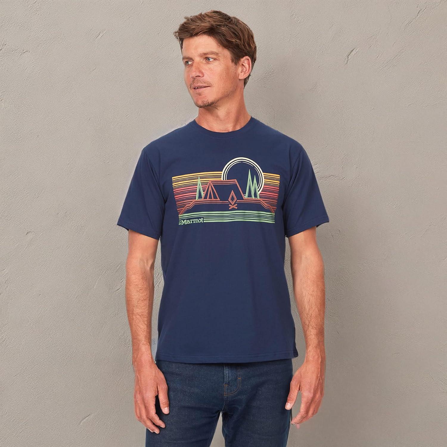 From days at the crag to nights around the campfire, layer on the lightweight Marmot Men's Culebra Peak Short-Sleeve T-Shirt. Featuring an eco-conscious ink-based graphic, this T-shirt for men is made with organic cotton for comfort and breathability. Wherever adventure leads, feel good knowing your graphic tee is helping to keep your playground wild.