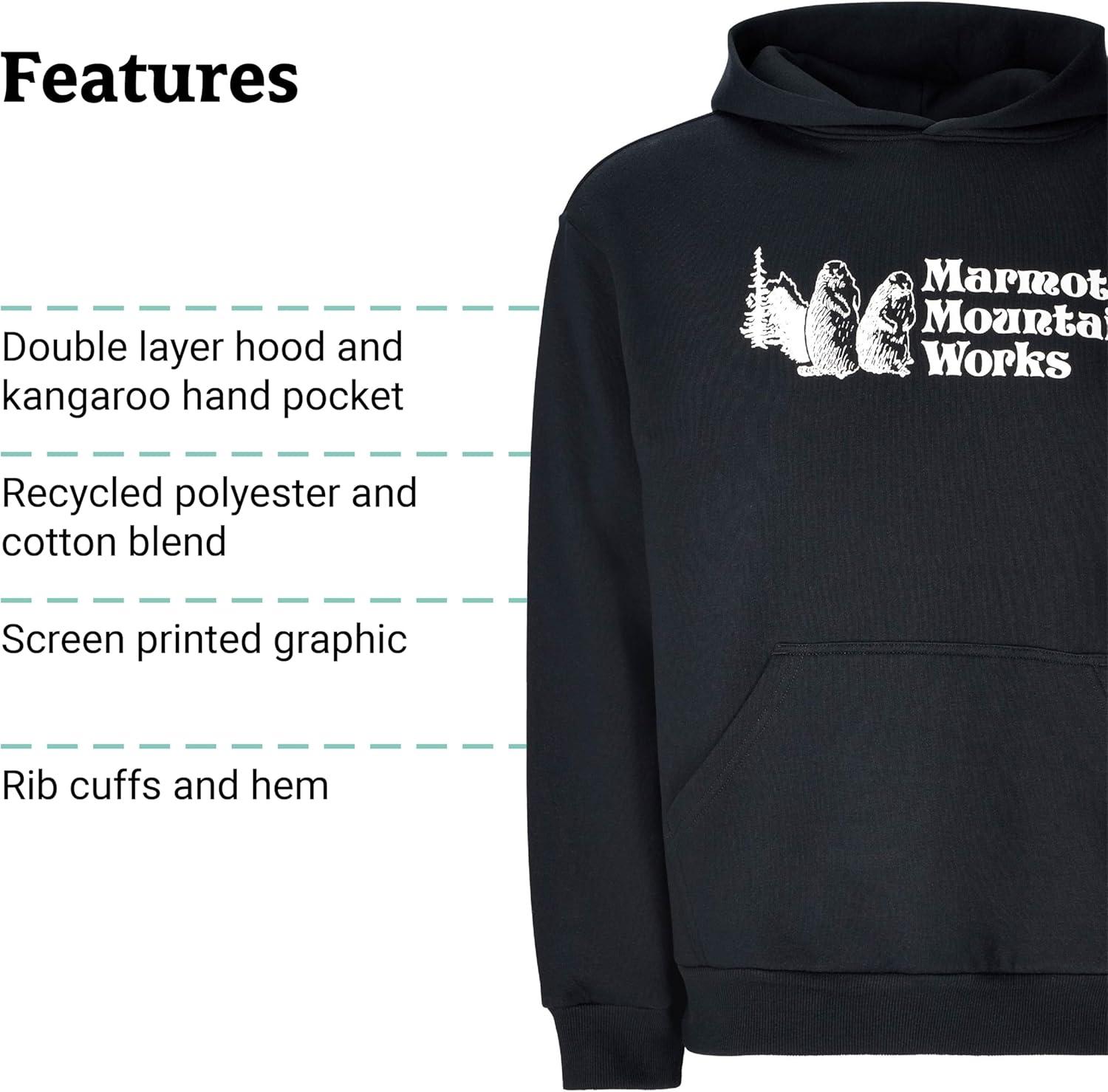 MARMOT Men’s MMW Hoody – Hooded Sweatshirt with Screen Printed Graphic, Double-Layer Hood and Kangaroo Pocket(Black)