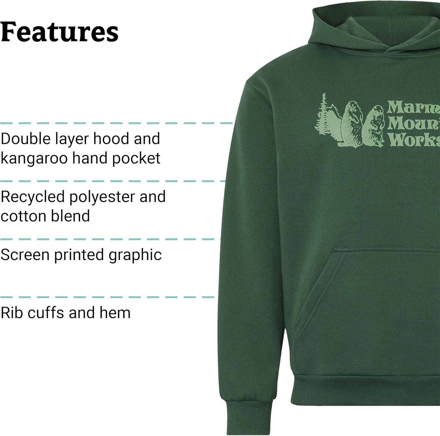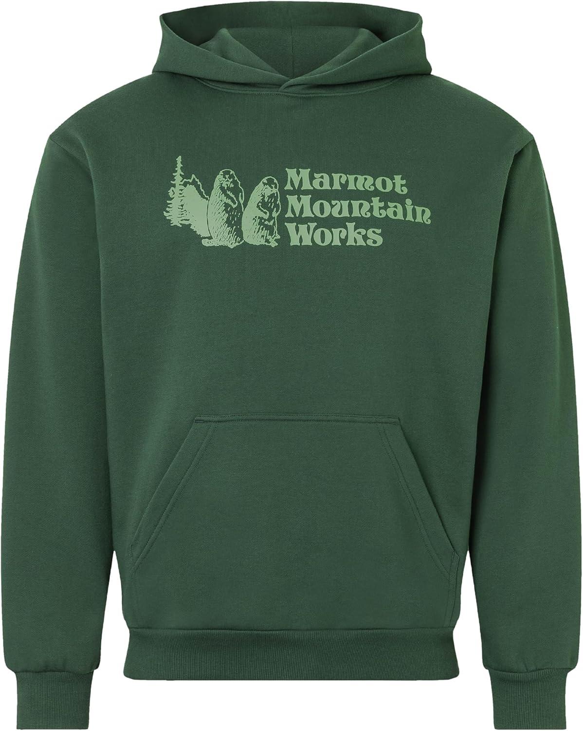 MARMOT Men’s MMW Hoody – Hooded Sweatshirt with Screen Printed Graphic, Double-Layer Hood and Kangaroo Pocket(Juniper Green)
