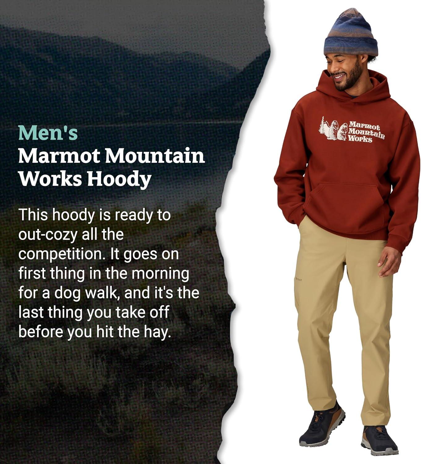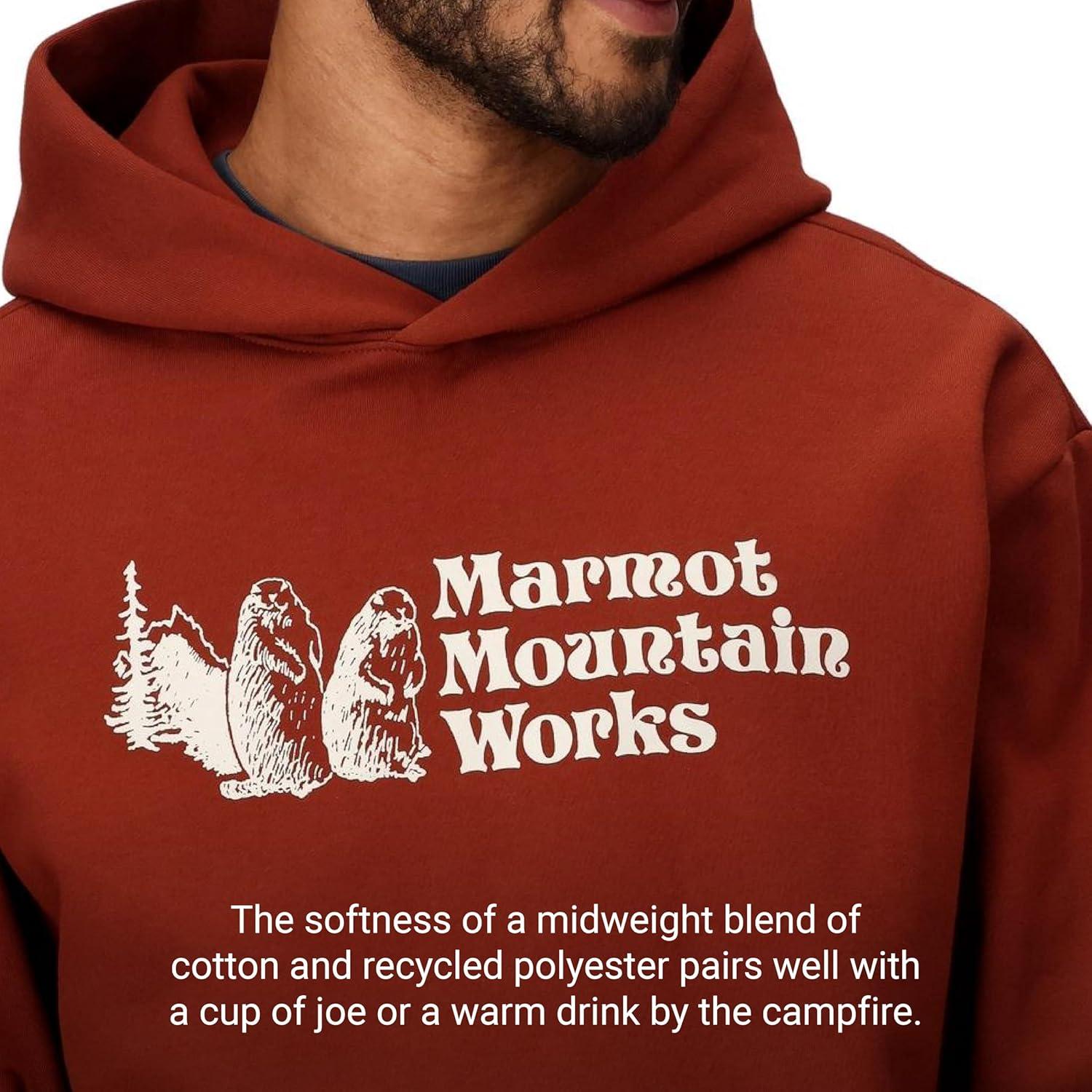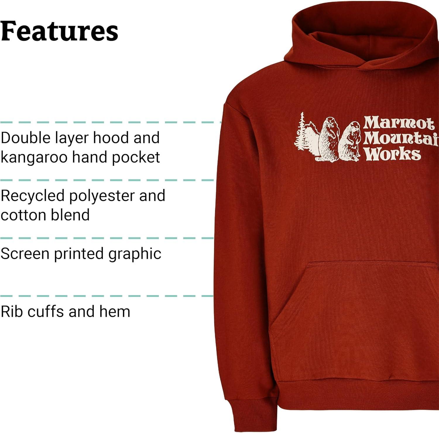 MARMOT Men’s MMW Hoody – Hooded Sweatshirt with Screen Printed Graphic, Double-Layer Hood and Kangaroo Pocket(Pecan)