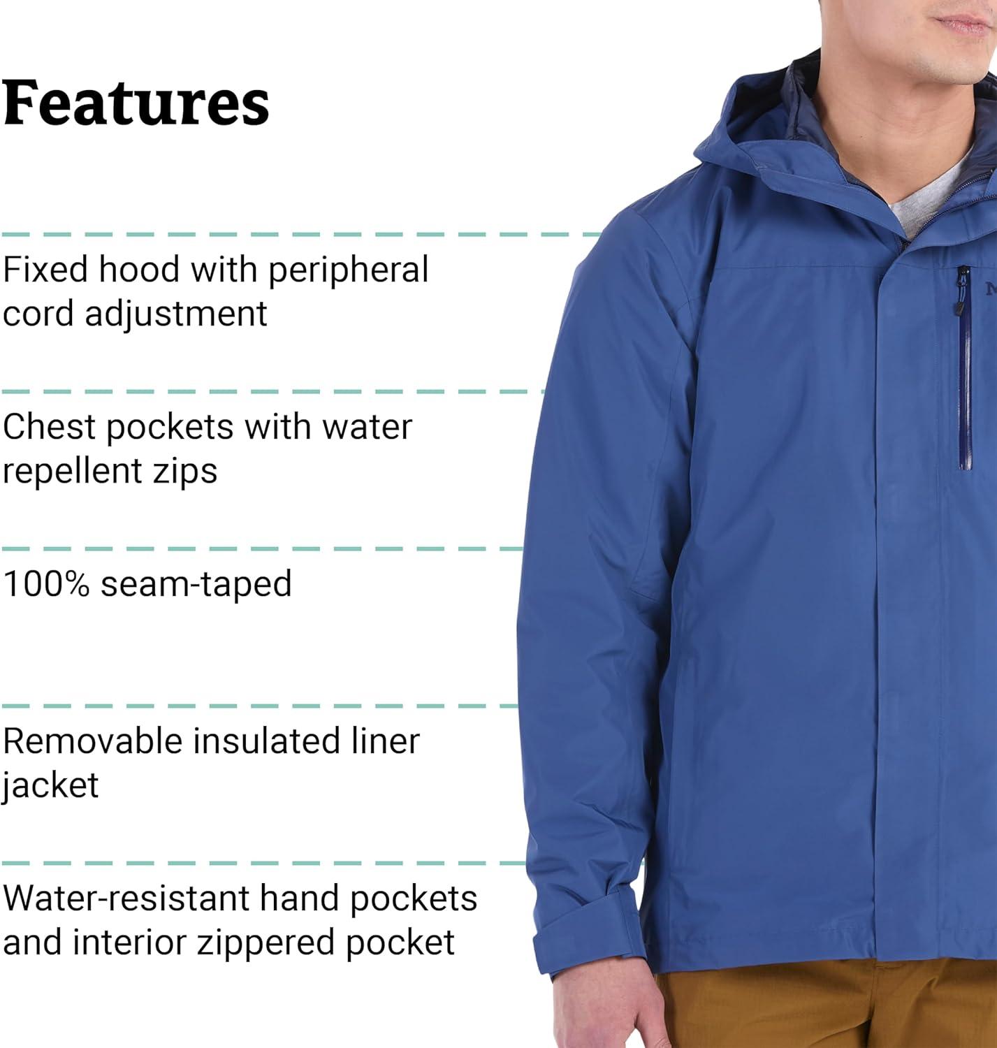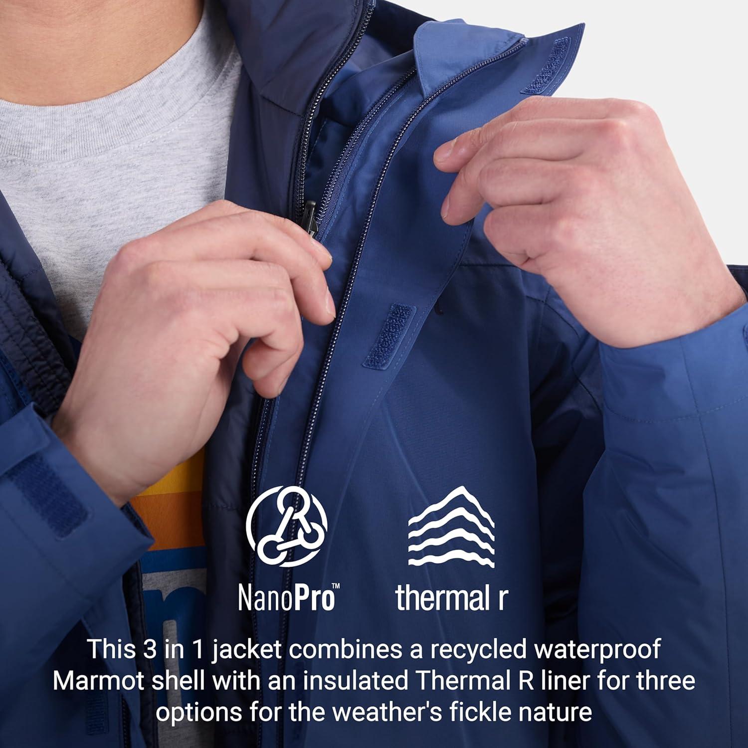 MARMOT Men’s Ramble 3-in-1 Component Jacket – Recycled Waterproof Shell with Hood and Removable Insulated Thermal R Liner(Twilight Blue – Latest Collection)