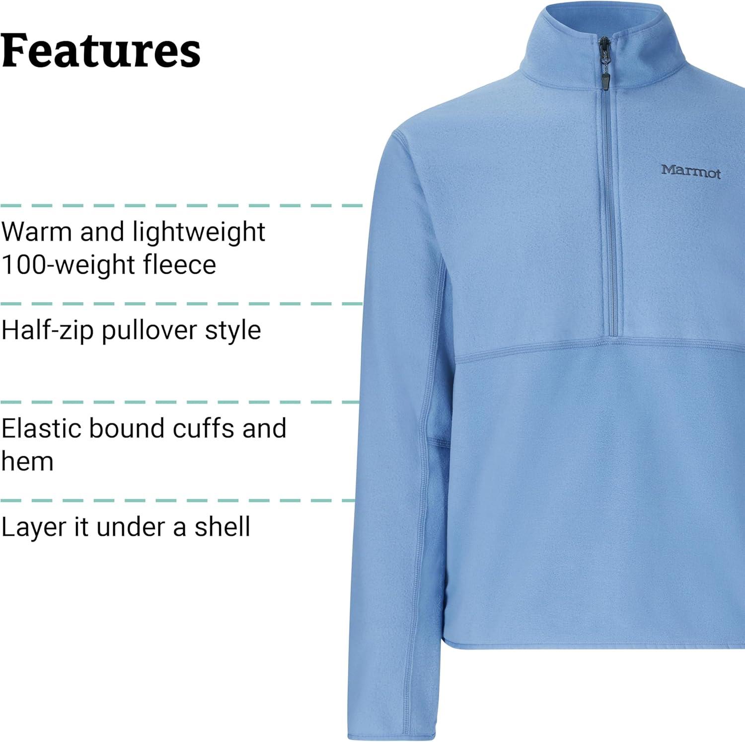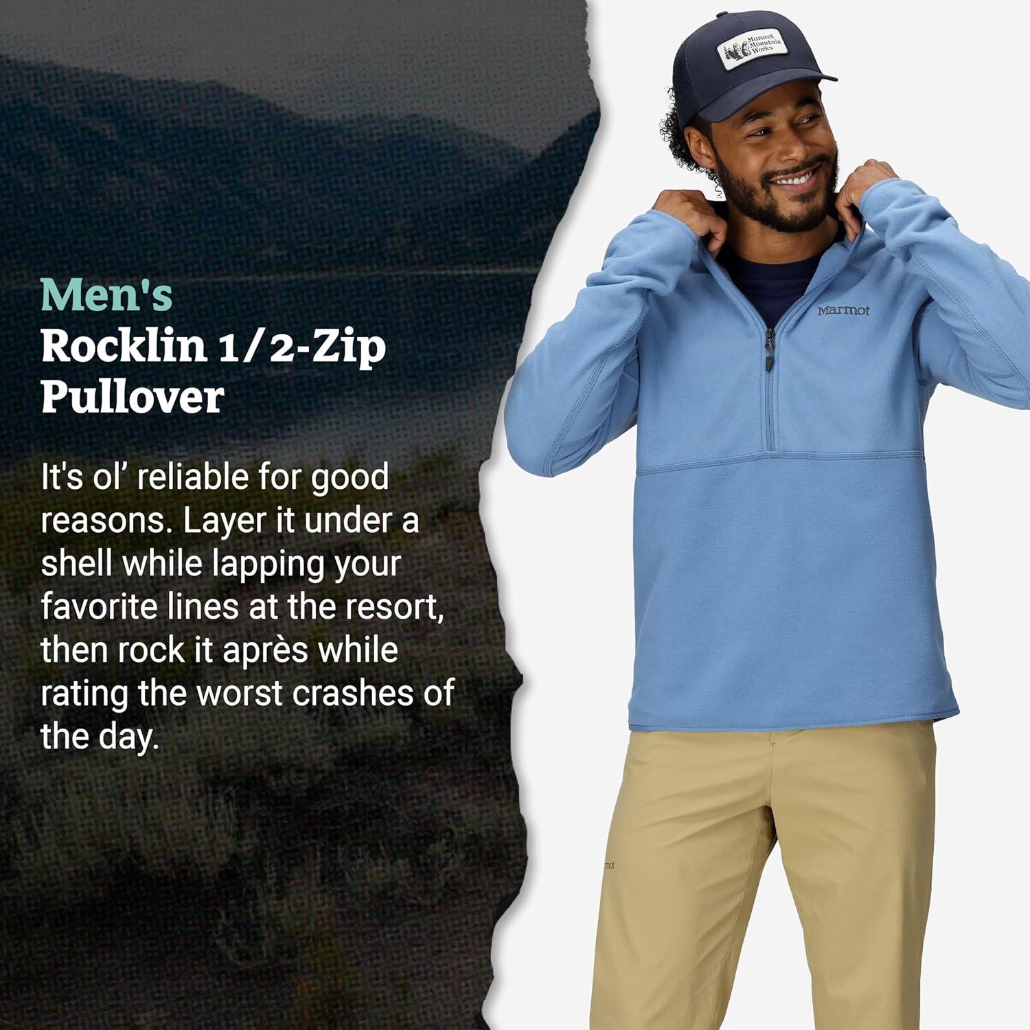 MARMOT Men’s Rocklin 1/2 Zip Jacket – Classic, Warm, Lightweight 100-Weight Fleece Layer(Rain Cloud)
