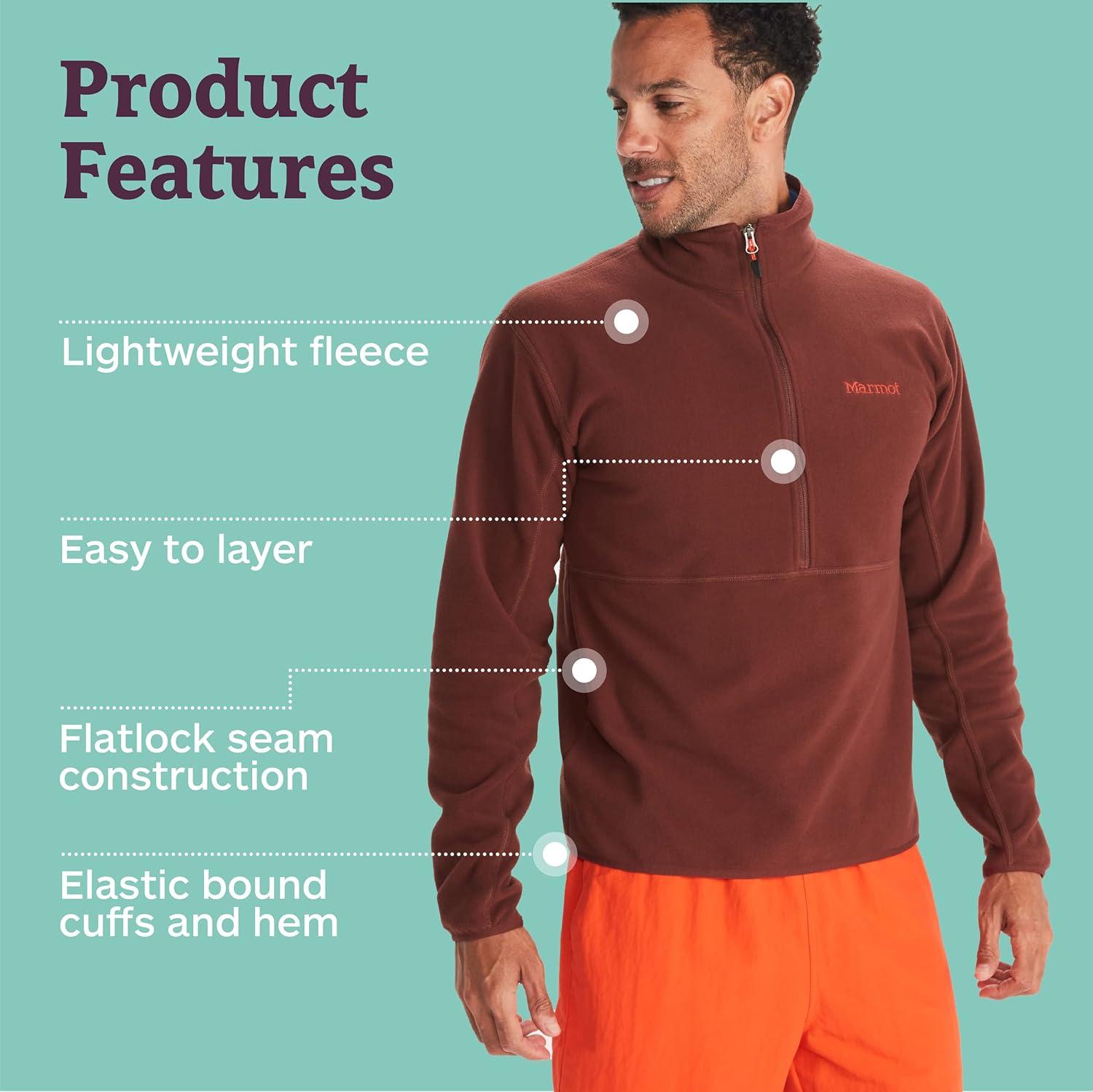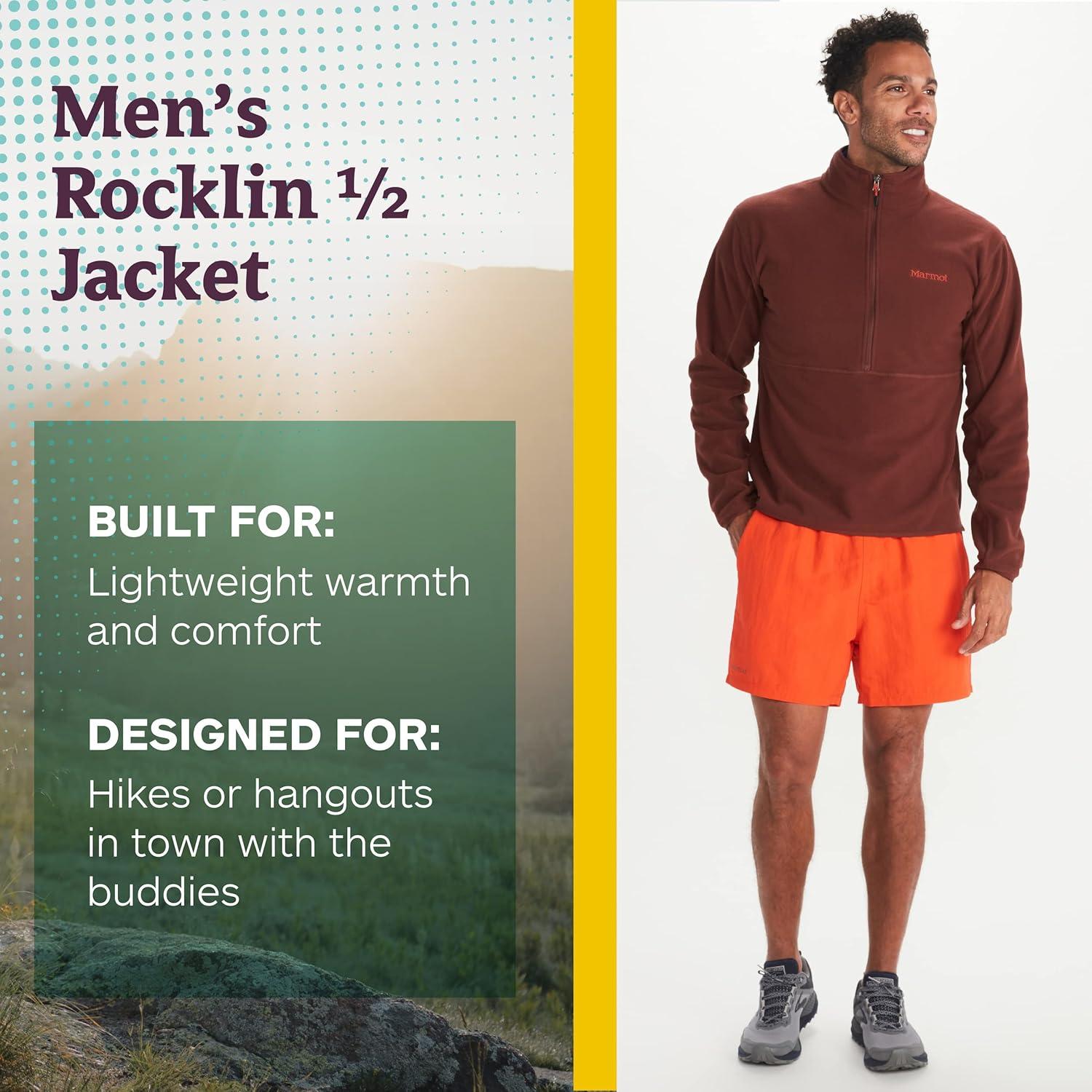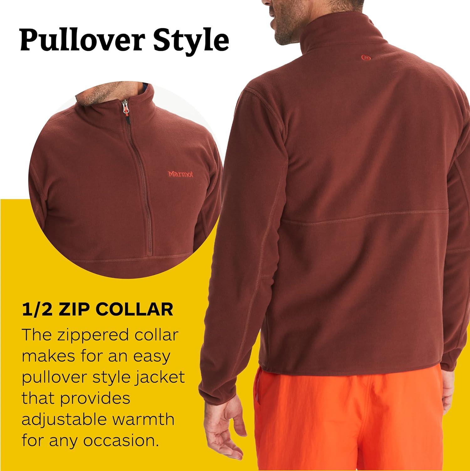 MARMOT Men’s Rocklin 1/2 Zip Jacket – Classic, Warm, Lightweight 100-Weight Fleece Layer(Whiskey Brown)