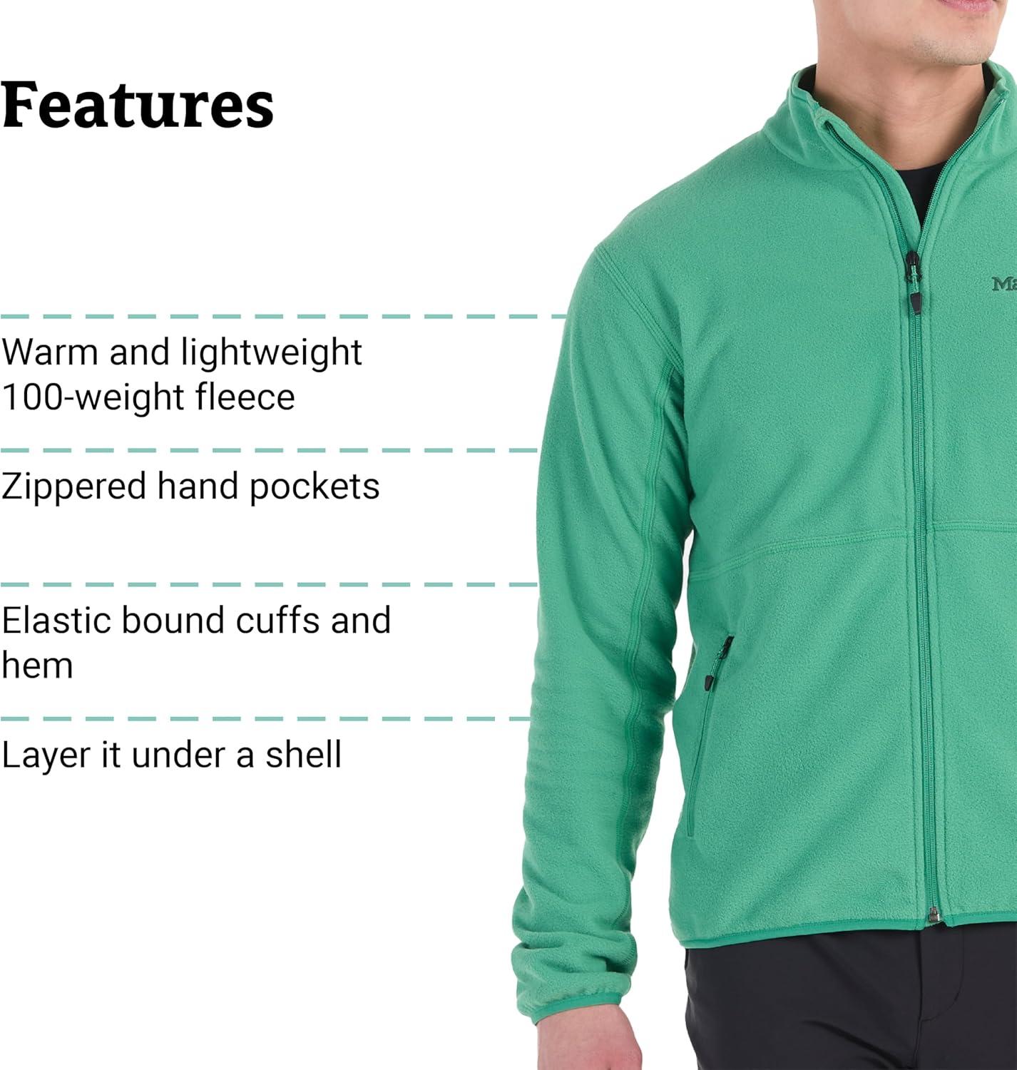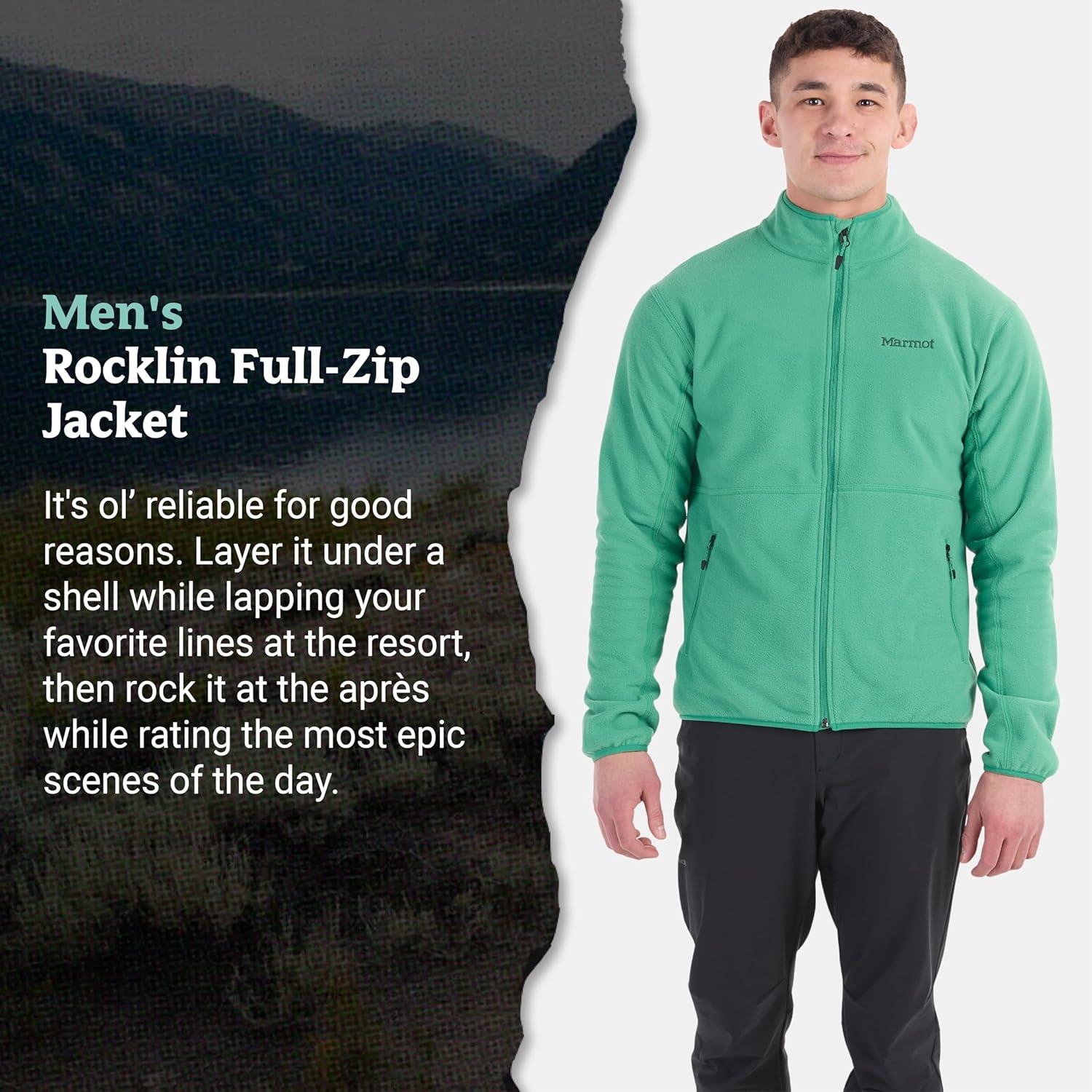 MARMOT Men’s Rocklin Full-Zip Jacket – Classic, Warm, Lightweight 100-Weight Fleece Layer(Clover)