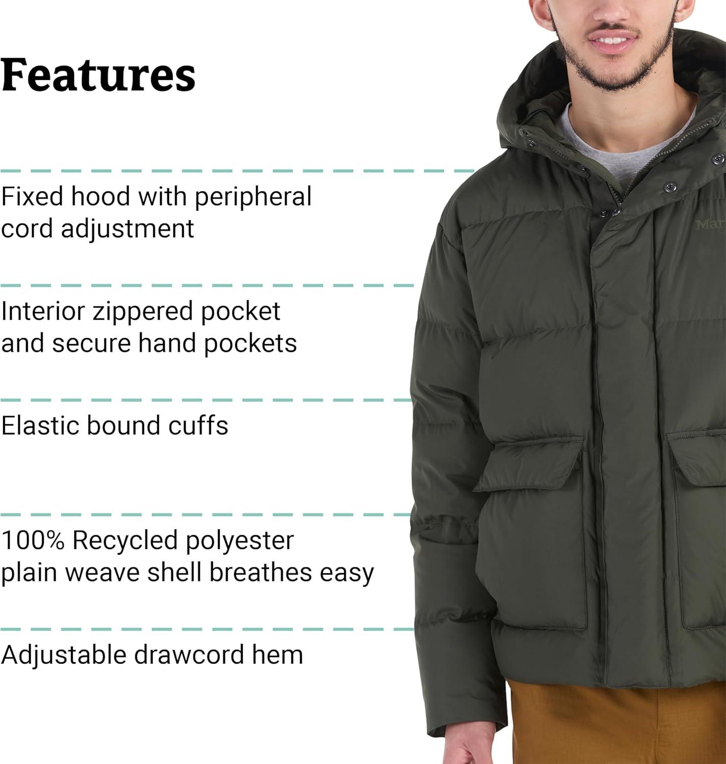 MARMOT Men’s Stockholm 700 Fill Down Puffer with Hood(Rosin Green – Latest Collection)