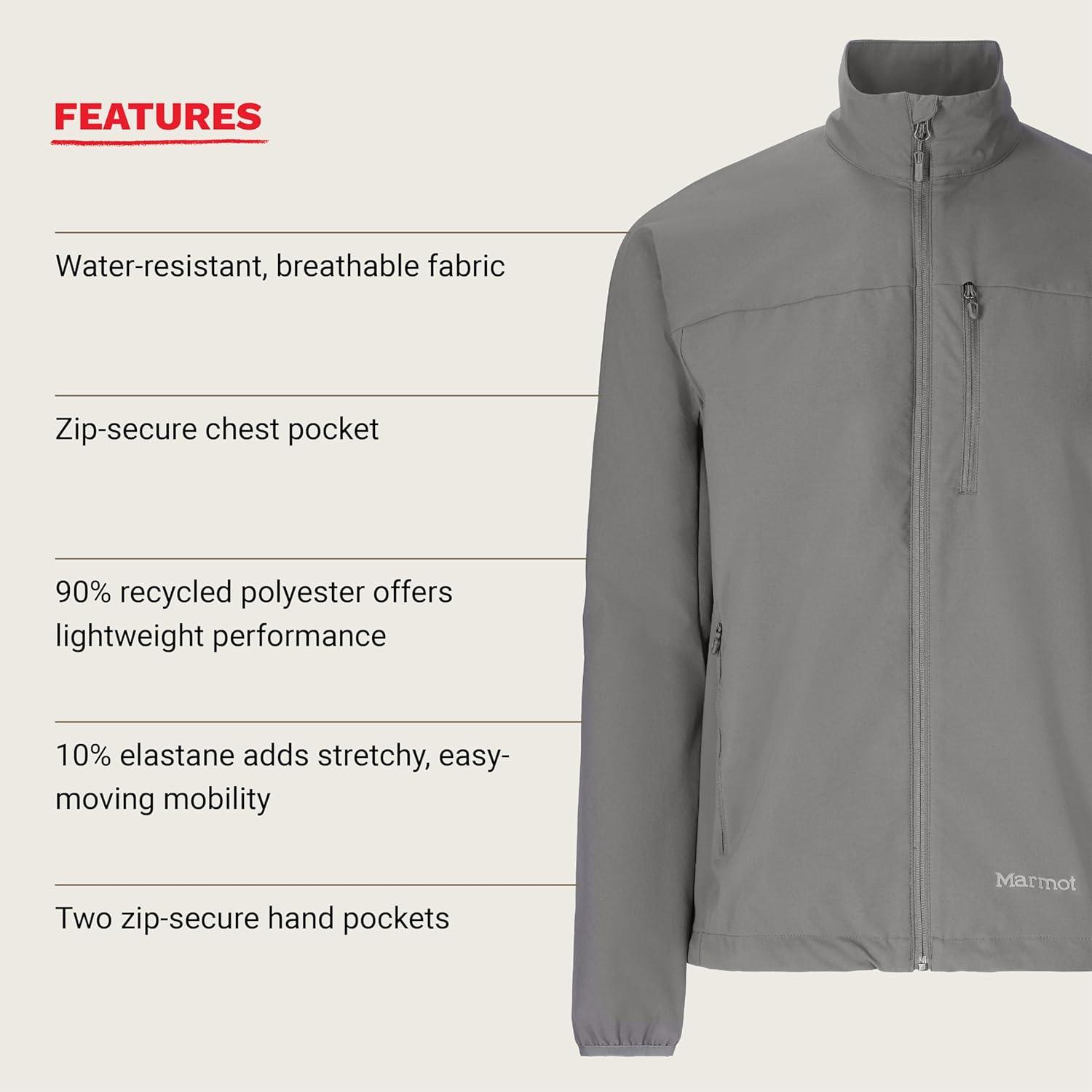 MARMOT Men’s Tempo Jacket – Breathable, Water-Resistant Softshell(Cinder – Latest Collection)