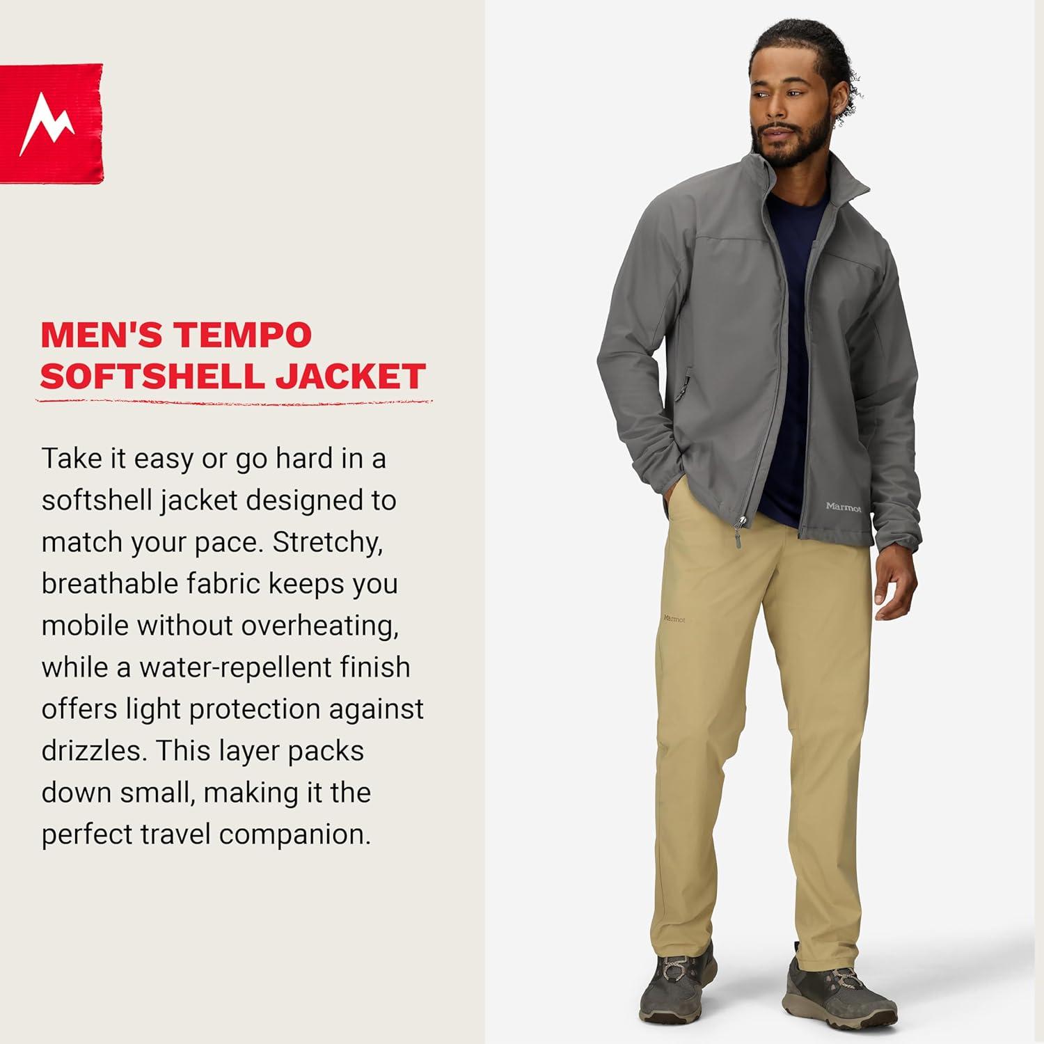 The Marmot Tempo Soft-Shell Jacket for men is extremely breathable and performs well during intense activities, whether you're hiking, trail running, or exploring new ground in dry, mild weather. Look no further for protection from light wind and precipitation.