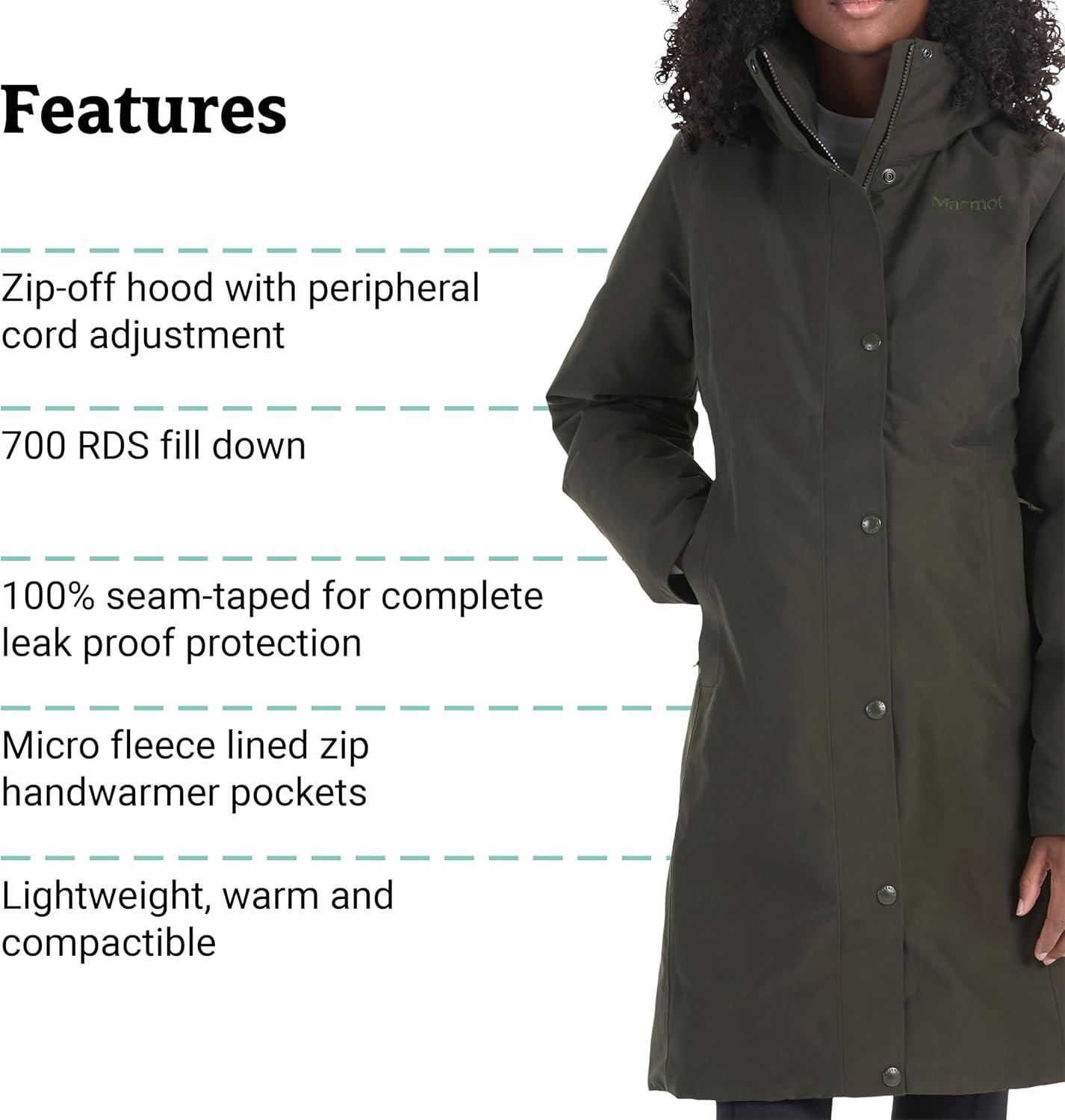MARMOT womens Chelsea 700 Down Fill Coat With Hood(Rosin Green – Latest Collection)