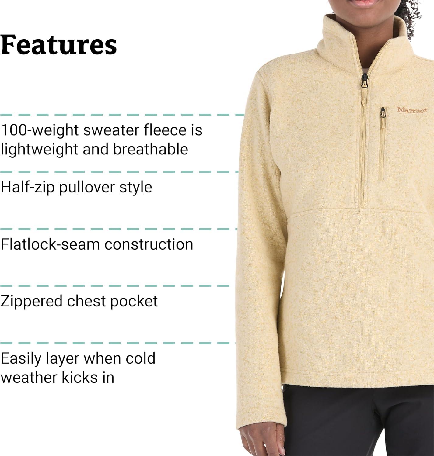 MARMOT Women’s Drop Line 1/2 Zip Pullover Jacket – Lightweight, Breathable 100-Weight Sweater Fleece(Light Oak)