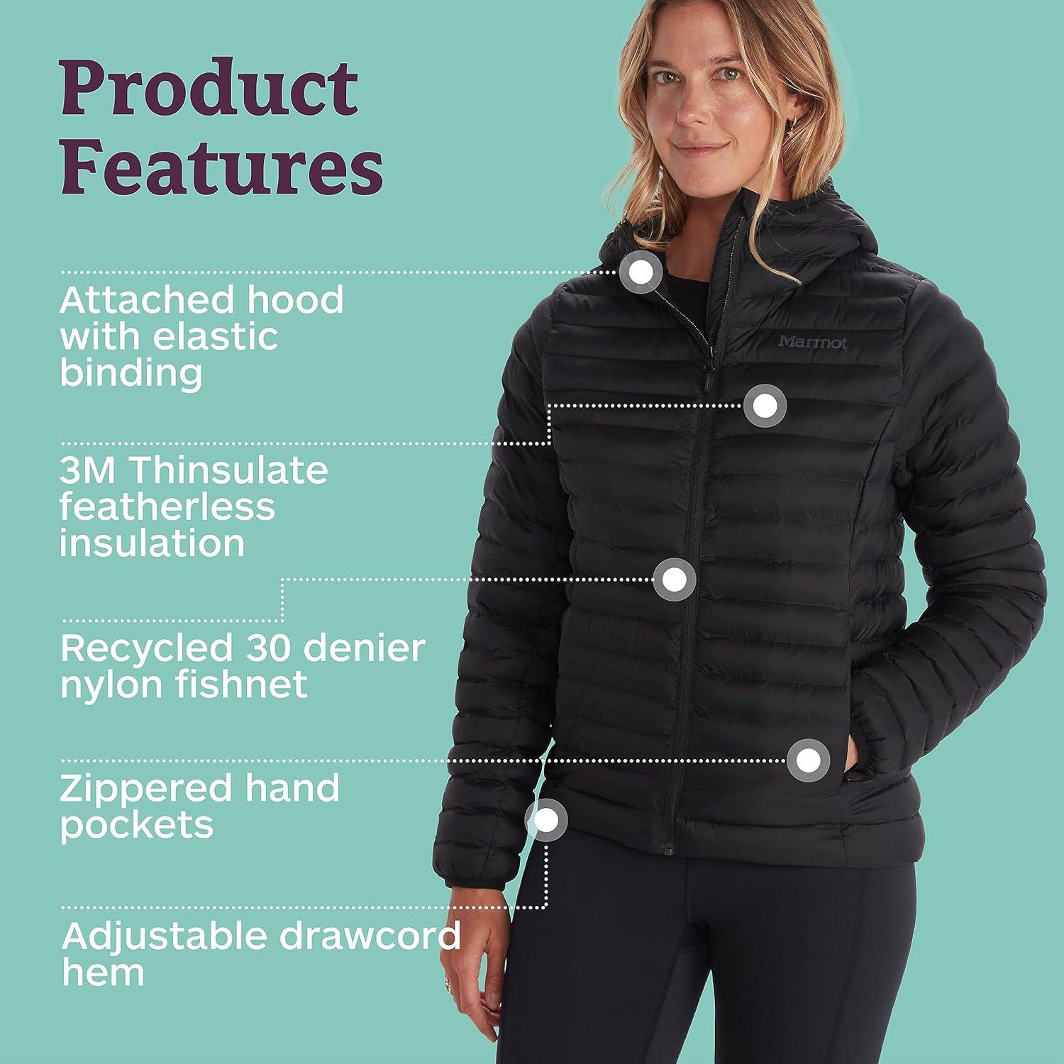 MARMOT Women’s Echo Featherless Hoody – Lightweight, Down-Alternative Hooded Insulated Jacket, Black, X-Small