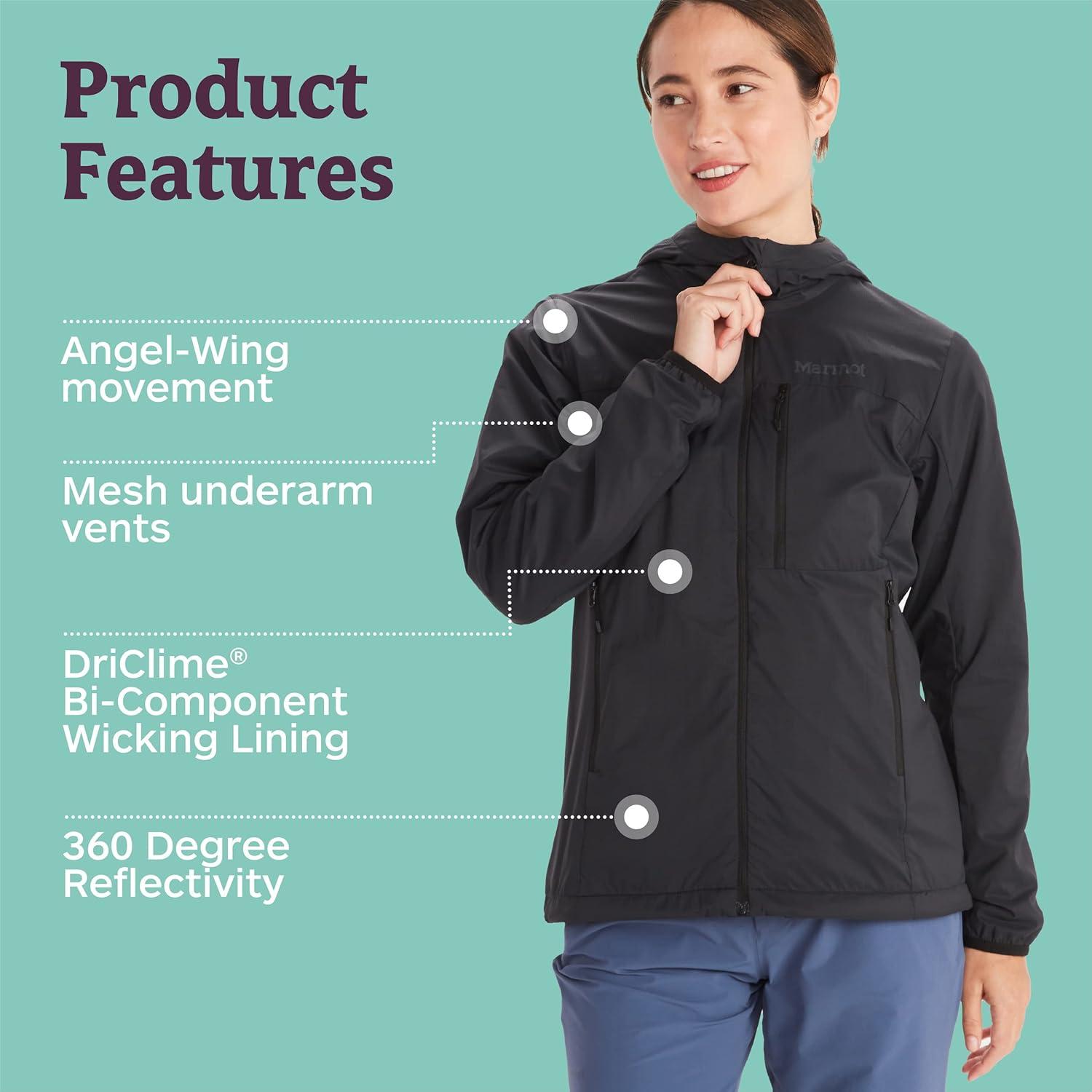 MARMOT Women’s Ether Driclime Hoody – Breathable, Comfortable, Packable Windbreaker Jacket with Hood(Black)