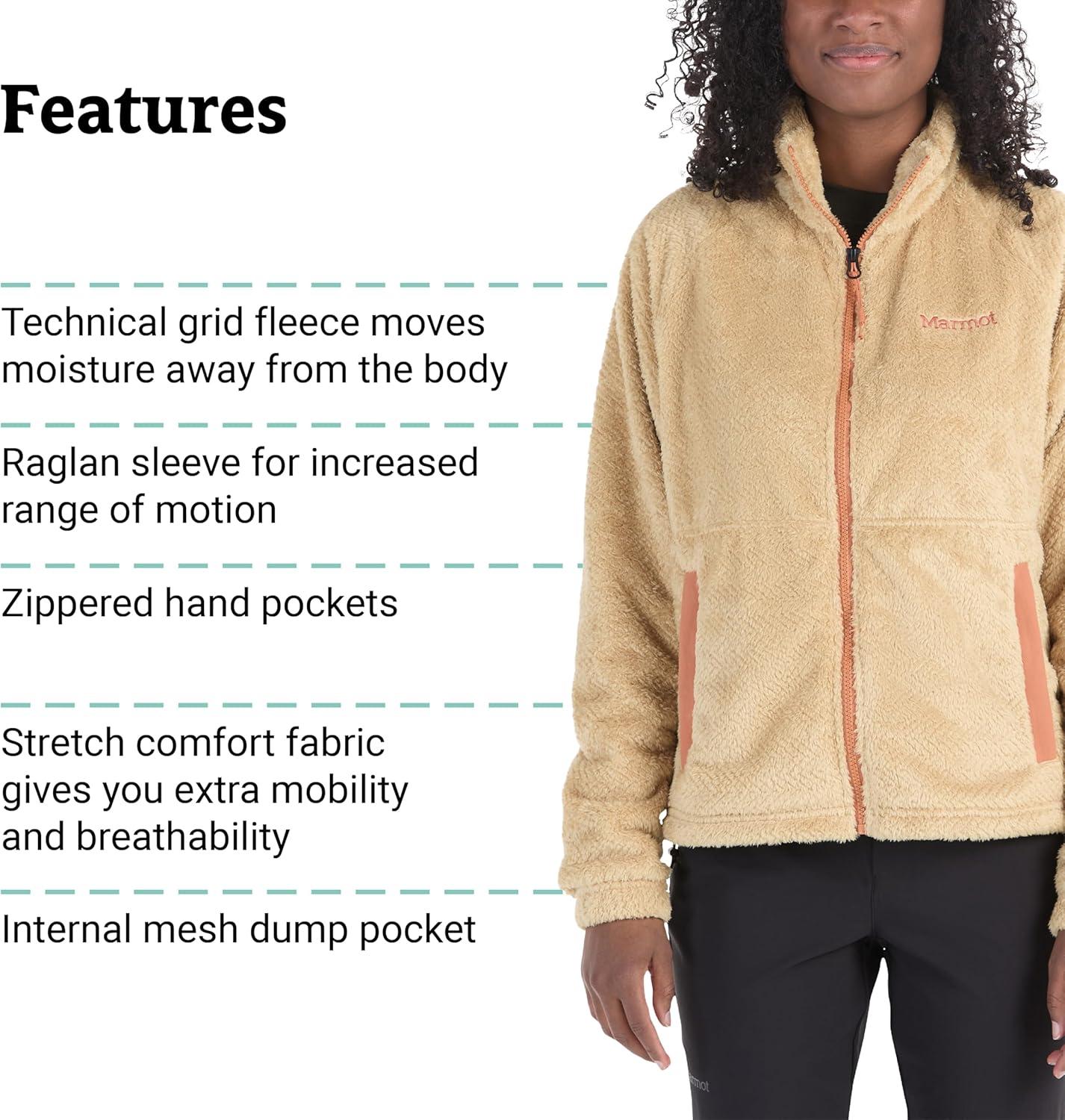 MARMOT Women’s Homestead Full-Zip Jacket – Blanket-Soft High-Pile Sherpa Fleece(Light Oak)
