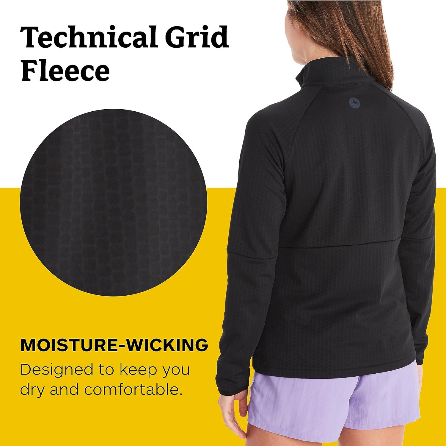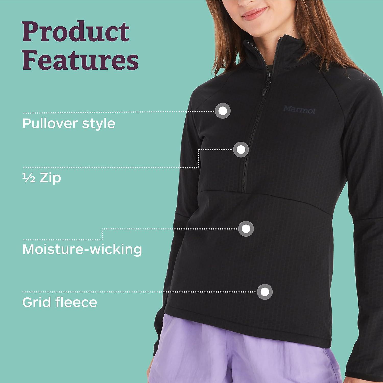 MARMOT Women’s Leconte Fleece 1/2 Zip Pullover Jacket – Lightweight, Breathable, Technical Grid Fleeced Layer(Black)