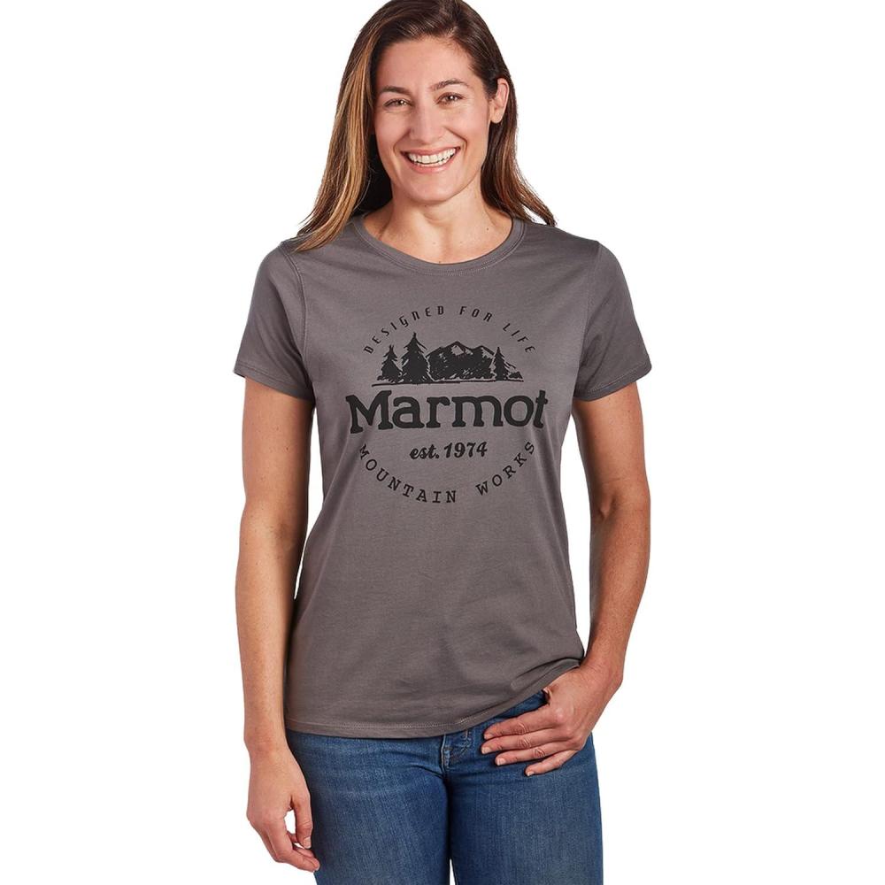 Marmot Women’s Logo T-Shirts – Printed Graphic on Cotton Tee(Culebra Charcoal)
