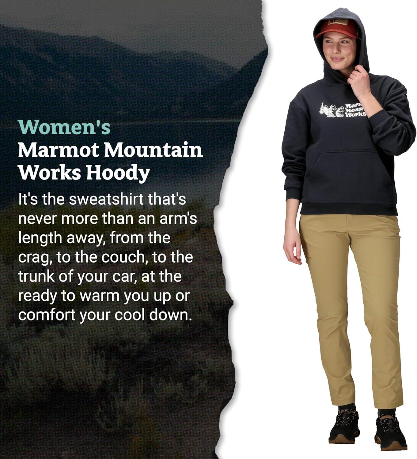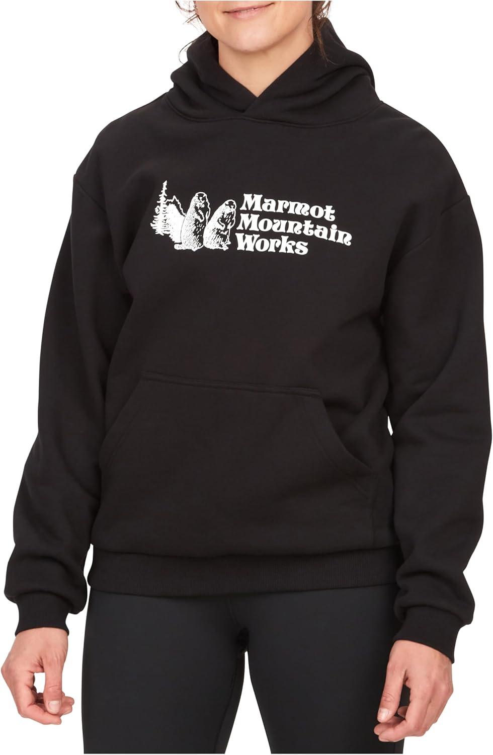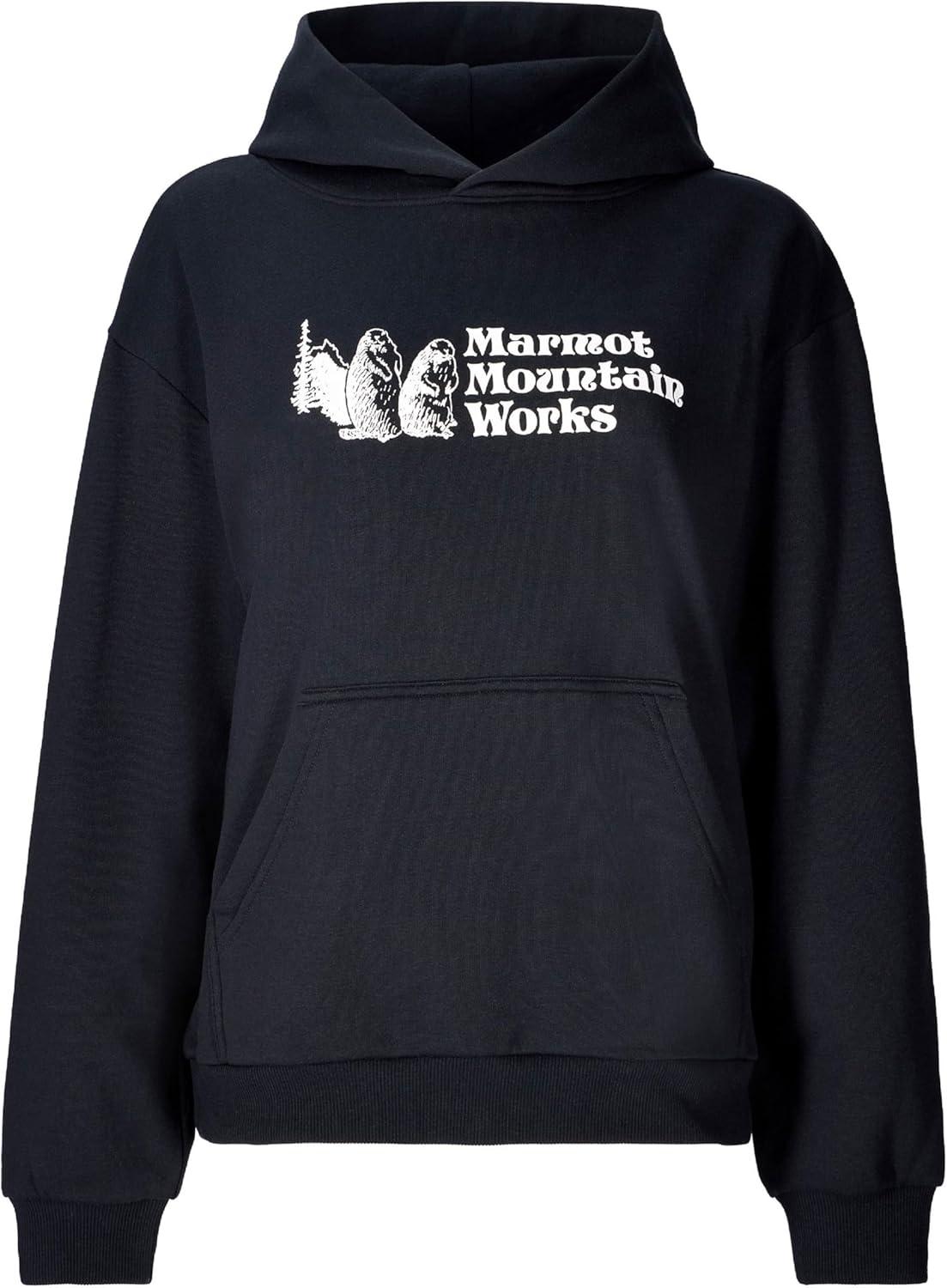 MARMOT Women’s Marmot for Life Hoody – Hooded Sweatshirt with Screen Printed Graphic, Double-Layer Hood and Kangaroo Pocket(Black)