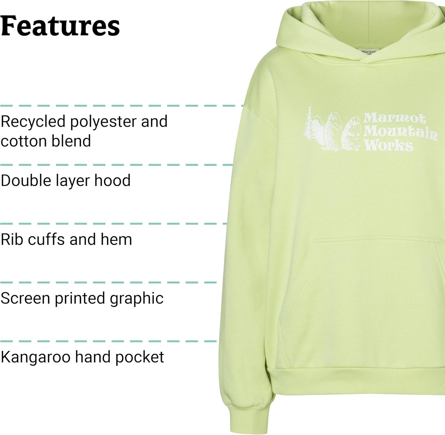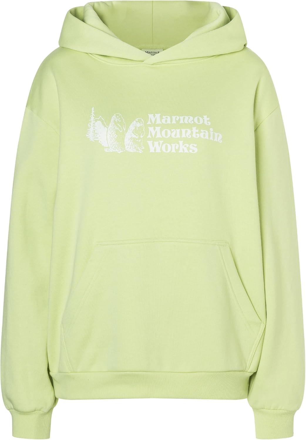 MARMOT Women’s Marmot for Life Hoody – Hooded Sweatshirt with Screen Printed Graphic, Double-Layer Hood and Kangaroo Pocket(Matcha)