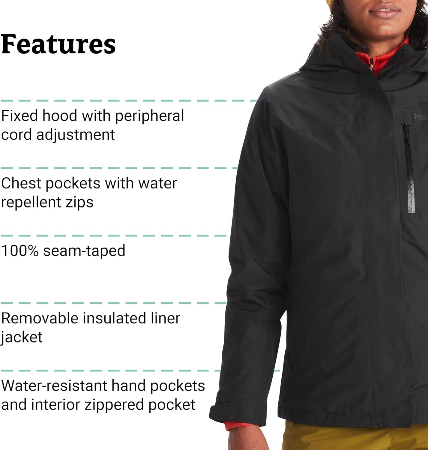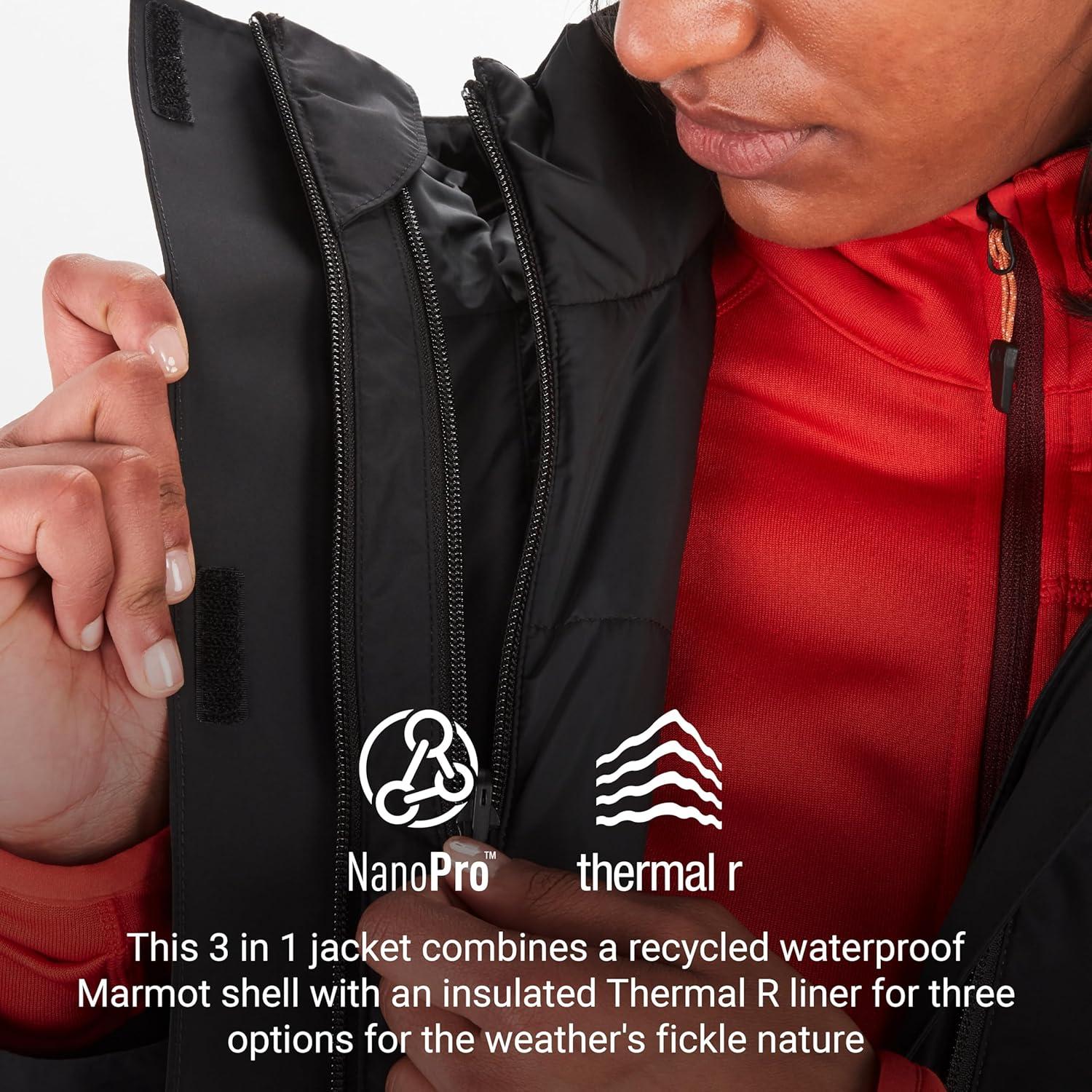 MARMOT Women’s Ramble 3-in-1 Component Jacket – Recycled Waterproof Shell with Hood and Removable Insulated Thermal R Liner(Black – Latest Collection)