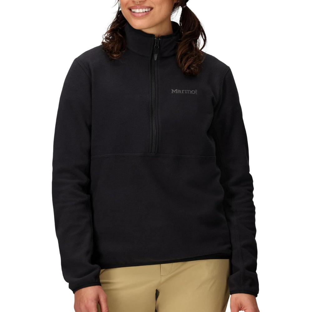MARMOT Women’s Rocklin 1/2 Zip Jacket – Classic, Warm, Lightweight 100-Weight Fleece Layer(Black)