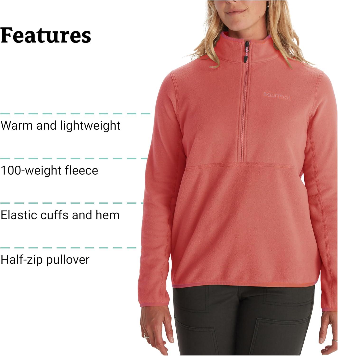 MARMOT Women’s Rocklin 1/2 Zip Jacket – Classic, Warm, Lightweight 100-Weight Fleece Layer(Grapefruit)