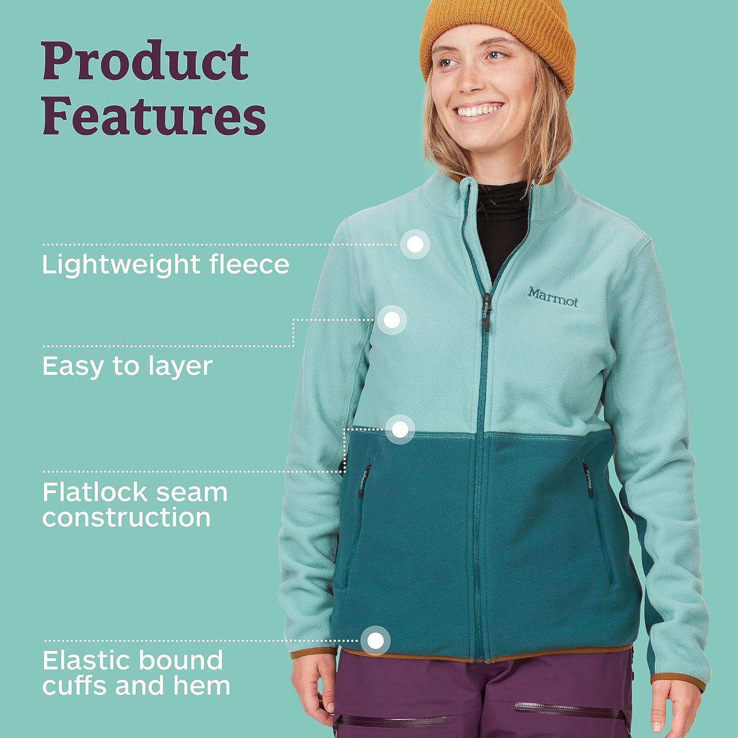 MARMOT Women’s Rocklin Full Zip Fleece Jacket(Blue Agave/Dark Jungle)