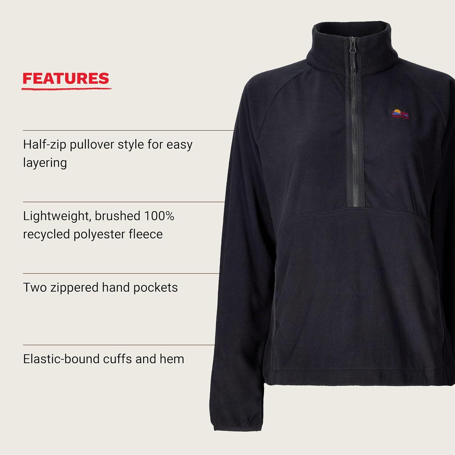 More than 50 years of outfitting your adventures has taught us that good looks never go out of style. This lightweight, high-pile fleece pullover combines retro appeal with modern-day features like zipper hand pockets and elastic-bound hems and cuffs.